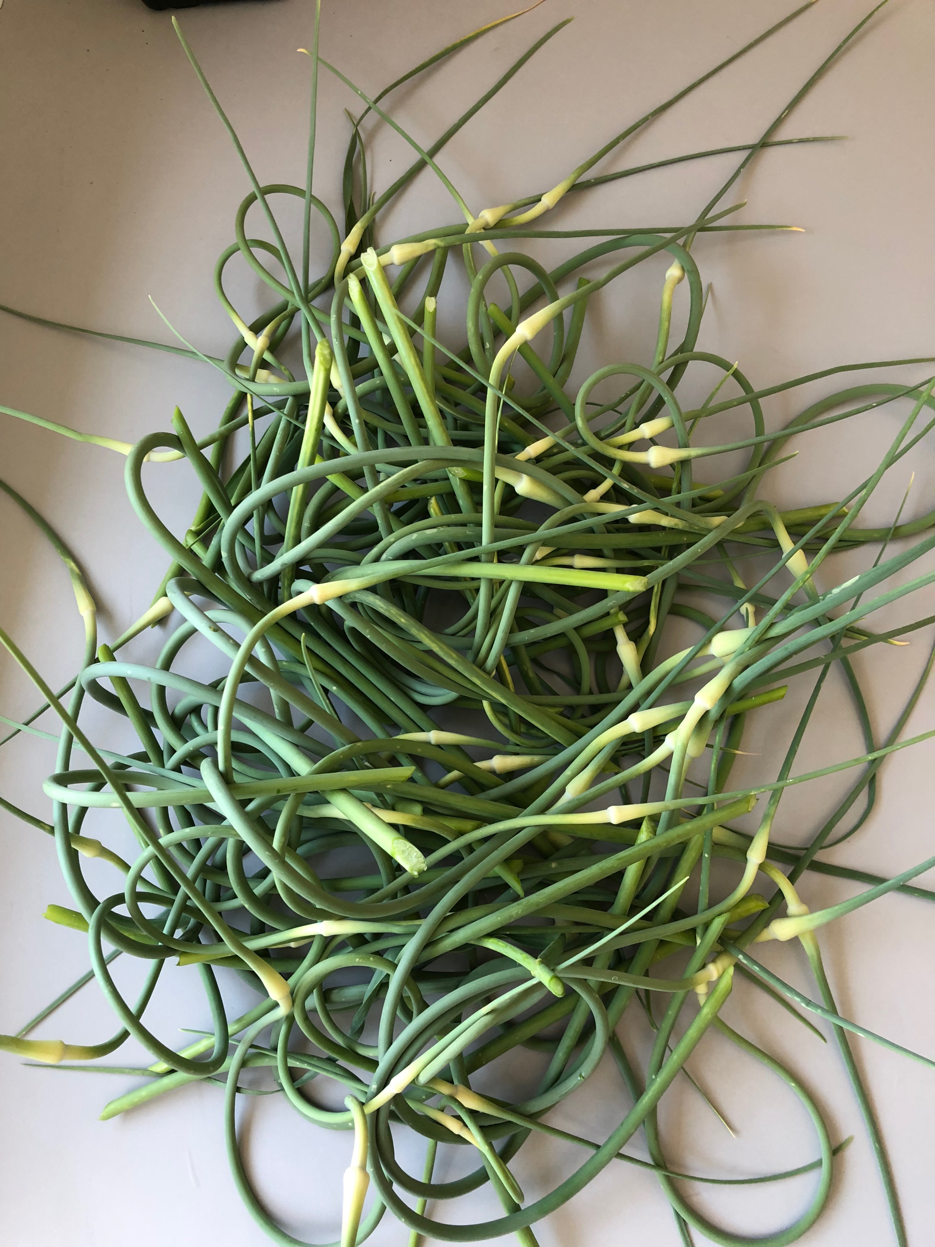 Other summer crops are somewhat marginal as the storms continue to knock away delicate blossoms. But we are happy to have the garlic ‘lollipops’ all prepped for sale to our customers.