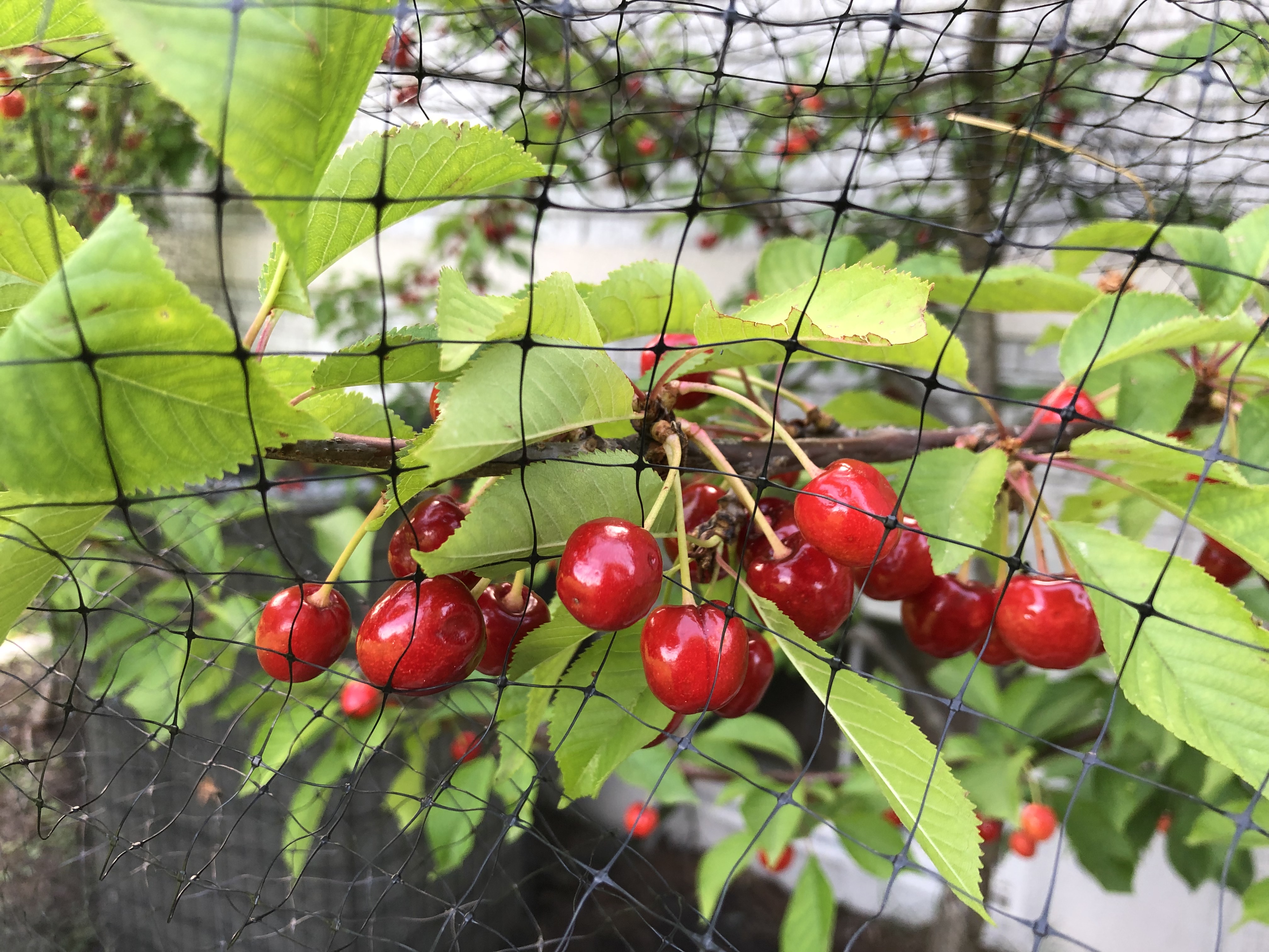 In addition to the tree trauma, we have also been challenged by critters who want to chew their way into our largish berry patch that is protected with a nylon netting enclosure that spans 45 x 75 feet. This enclosed system has worked beautifully for several years until we started to see a few spots where animals were chewing the lower edges of the netting to get access into the nirvana of waiting fruits. We repaired these spots as they became evident by re-weaving occasional holes with a flexible garden wire, thinking we were keeping the birds at bay.