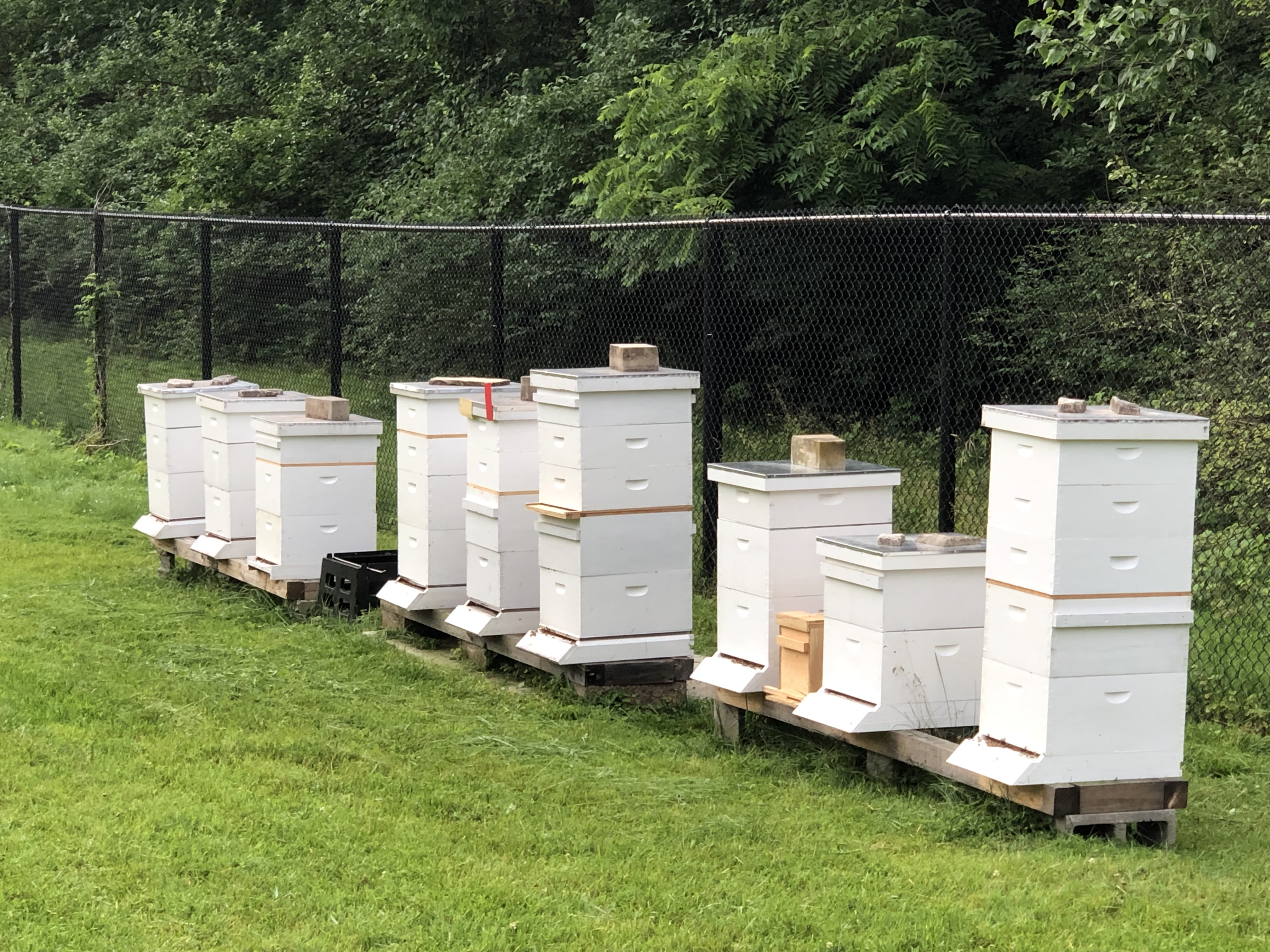 All the classes I took were amazing but I must say that one benefit of being part of the local bee club that sponsored the conference was to be able to purchase (practically free!) one of the 18 demonstration hives we had placed in the WashU quad for the event. After 3 long days of classes, I returned to campus at 5 the following morning – in the dark of day – to help move the hives off the campus site and brought one home to our apiary. I admit that I had the advantage of knowing the hives and chose well as I arrived at the farm with a very heavy colony of bees which we moved swiftly into place just after 6am.