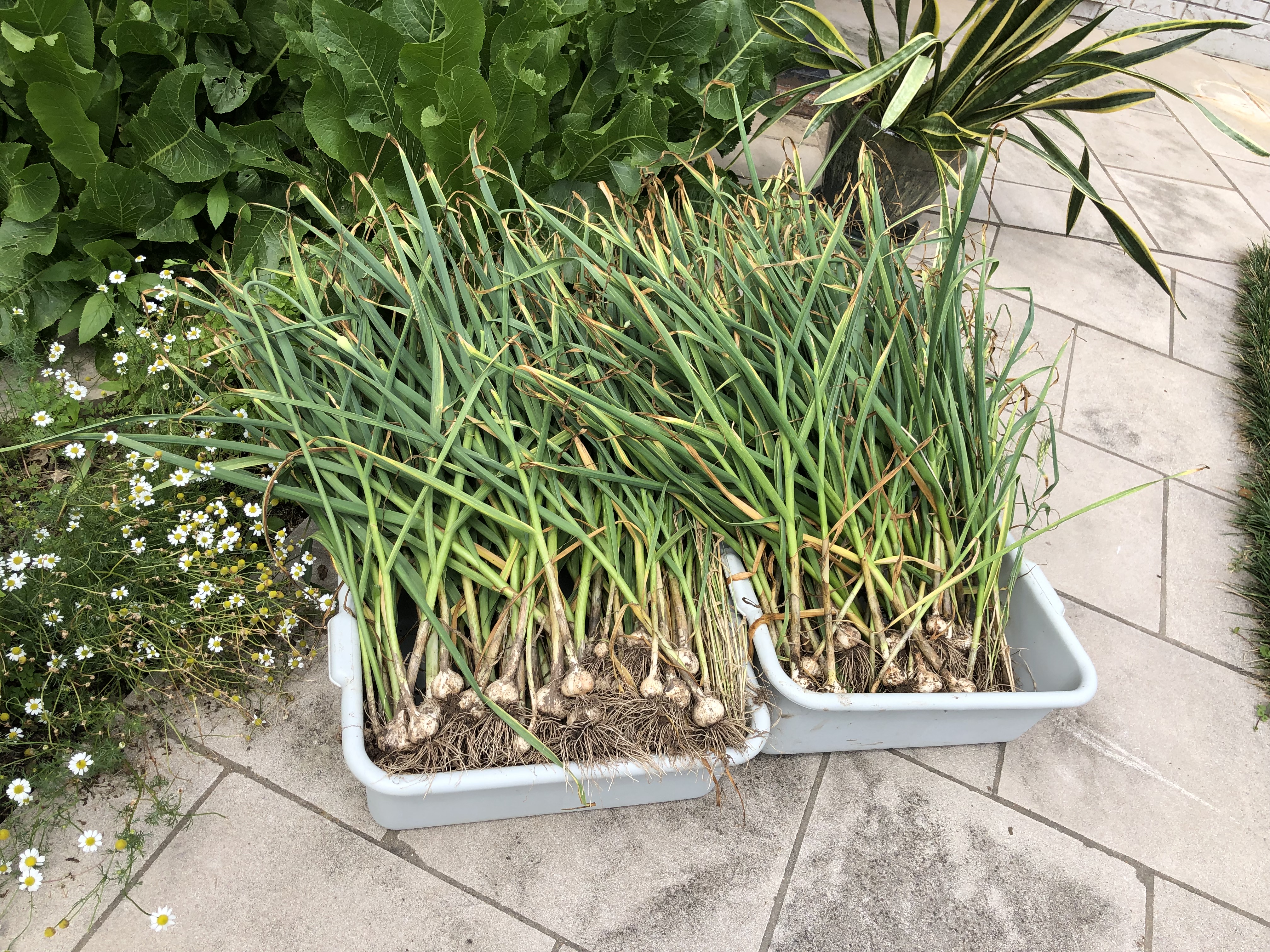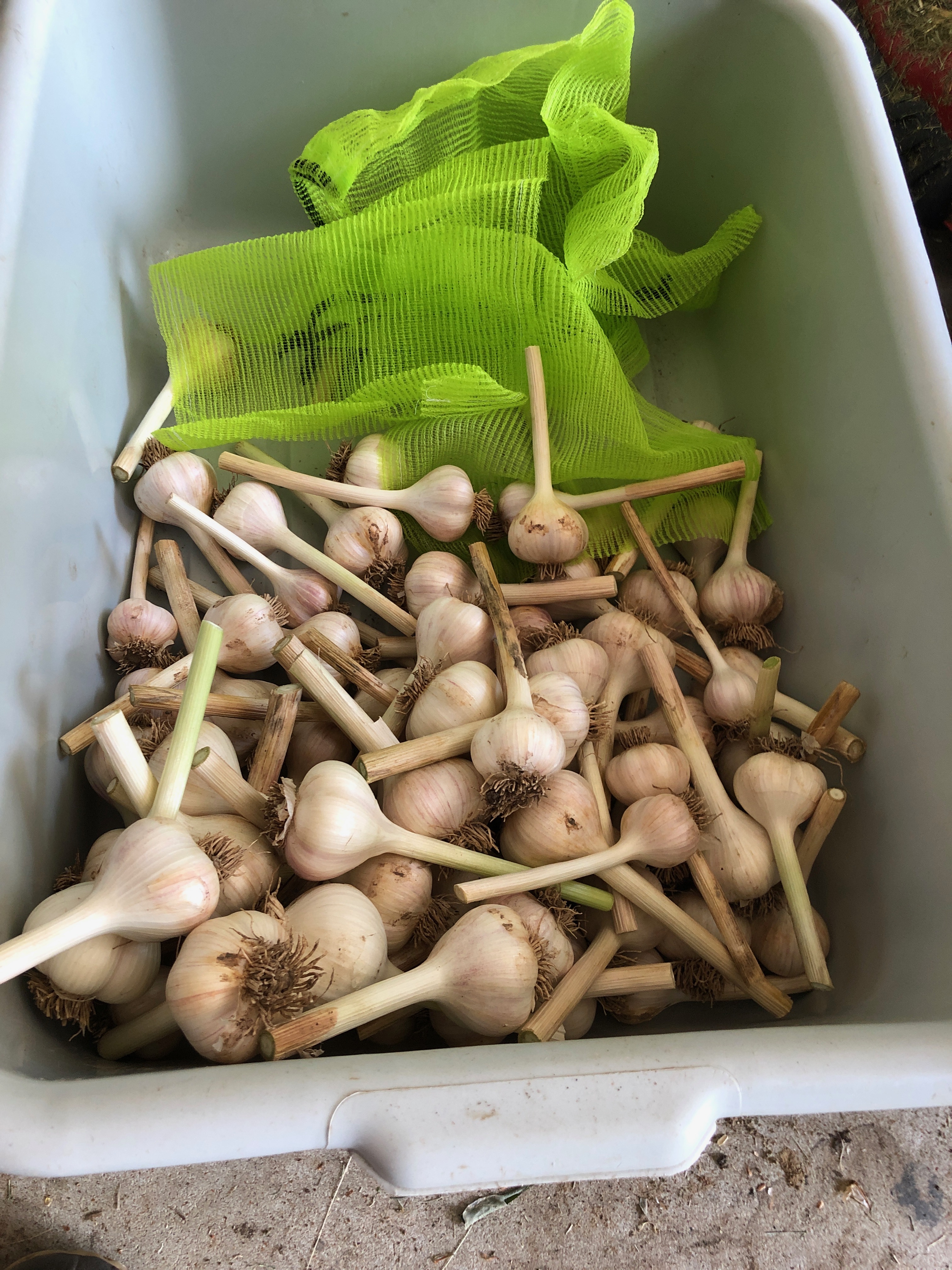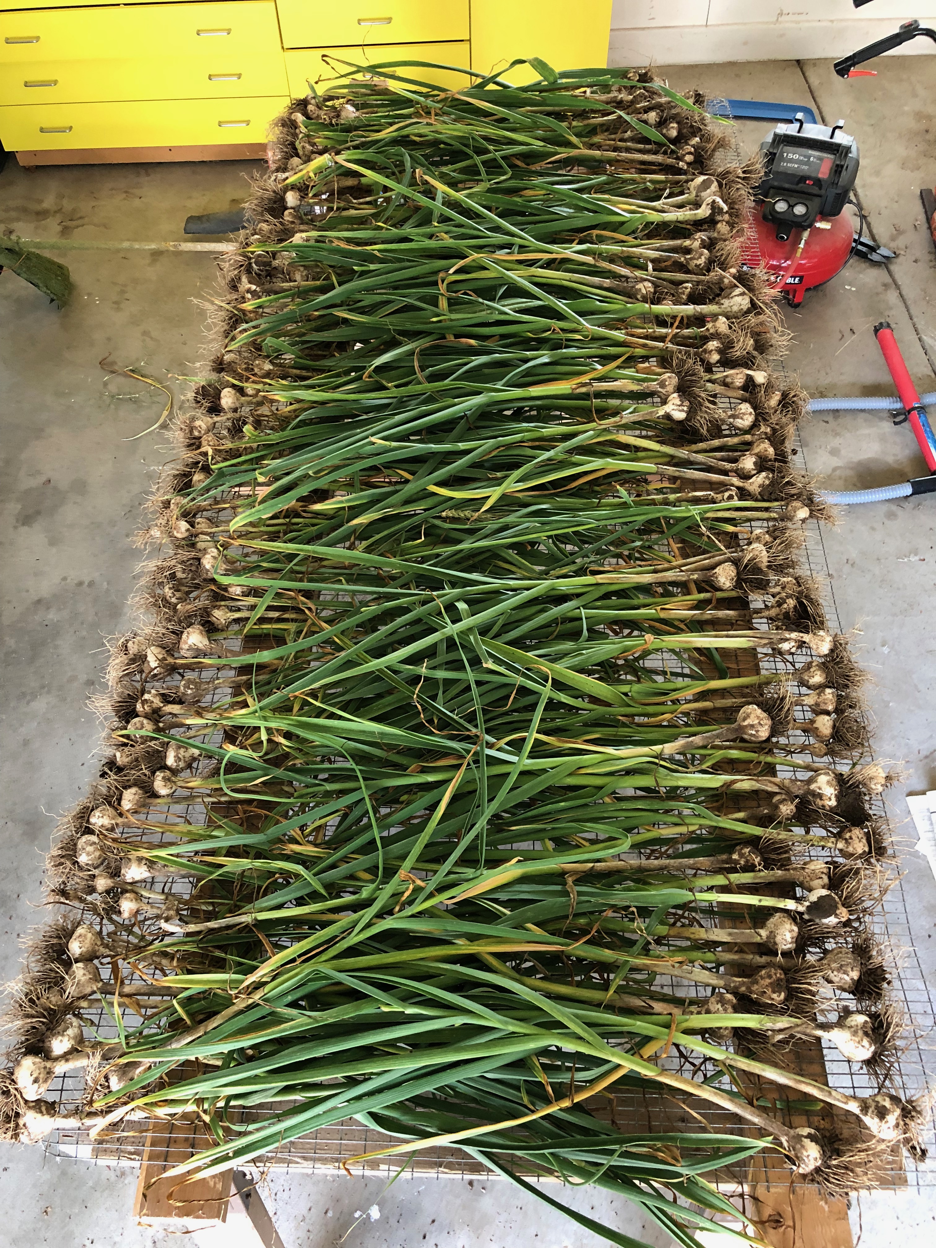 Next, we harvested the 2018 garlic crop…all 22.5 pounds of it! We laid them out in a single layer on a very large screen to dry for at least a week before prepping them for sale. The aroma of fresh garlic is absolutely WONDERFUL!