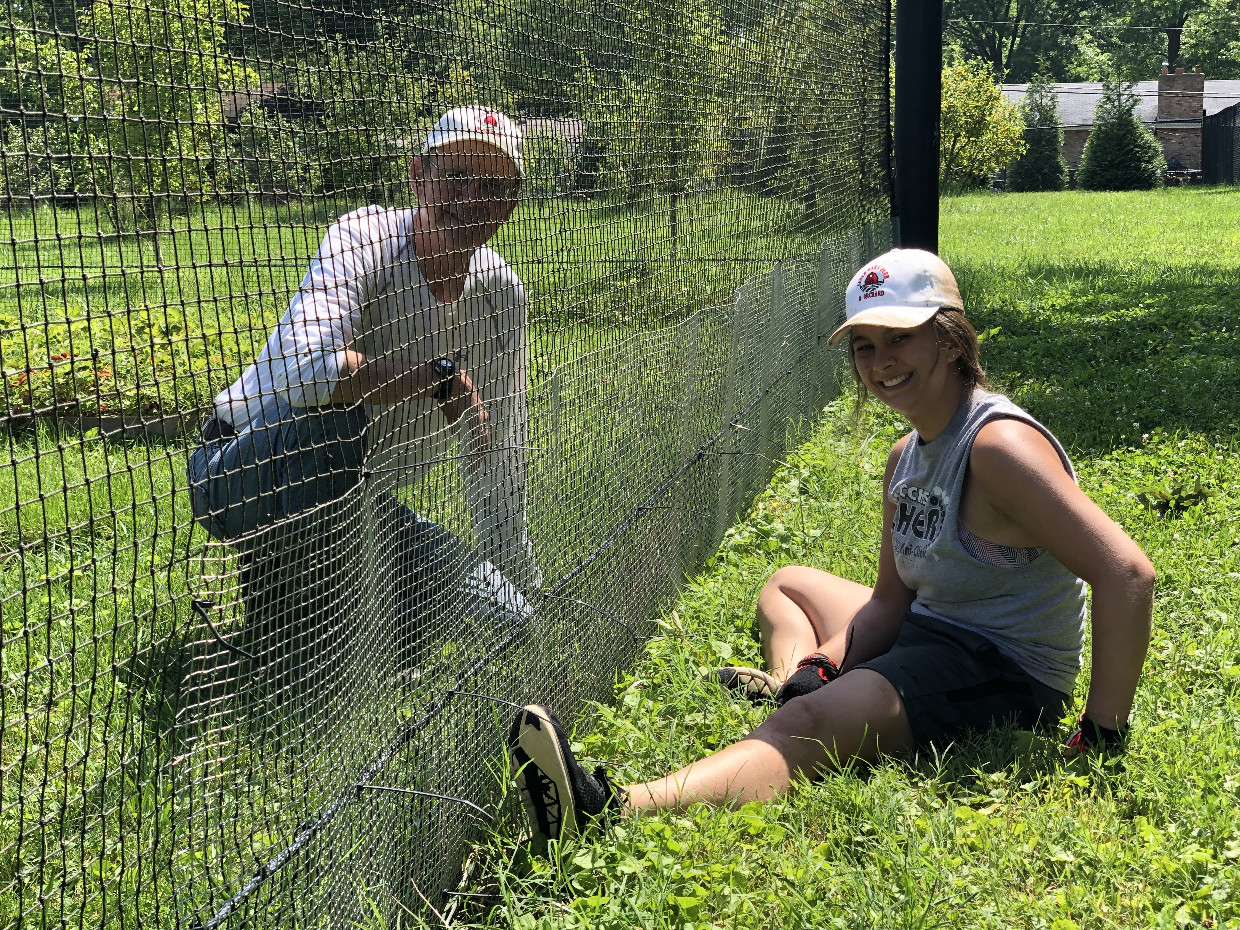 We decided to reinforce the base of the netted enclosure with lengths of hardware cloth secured with zip ties along the perimeter that would prevent the small critters from chewing the net. Dave and I had the extra help from our third set of hands, Jane, to help this project along but we are less than half way done at this juncture.
