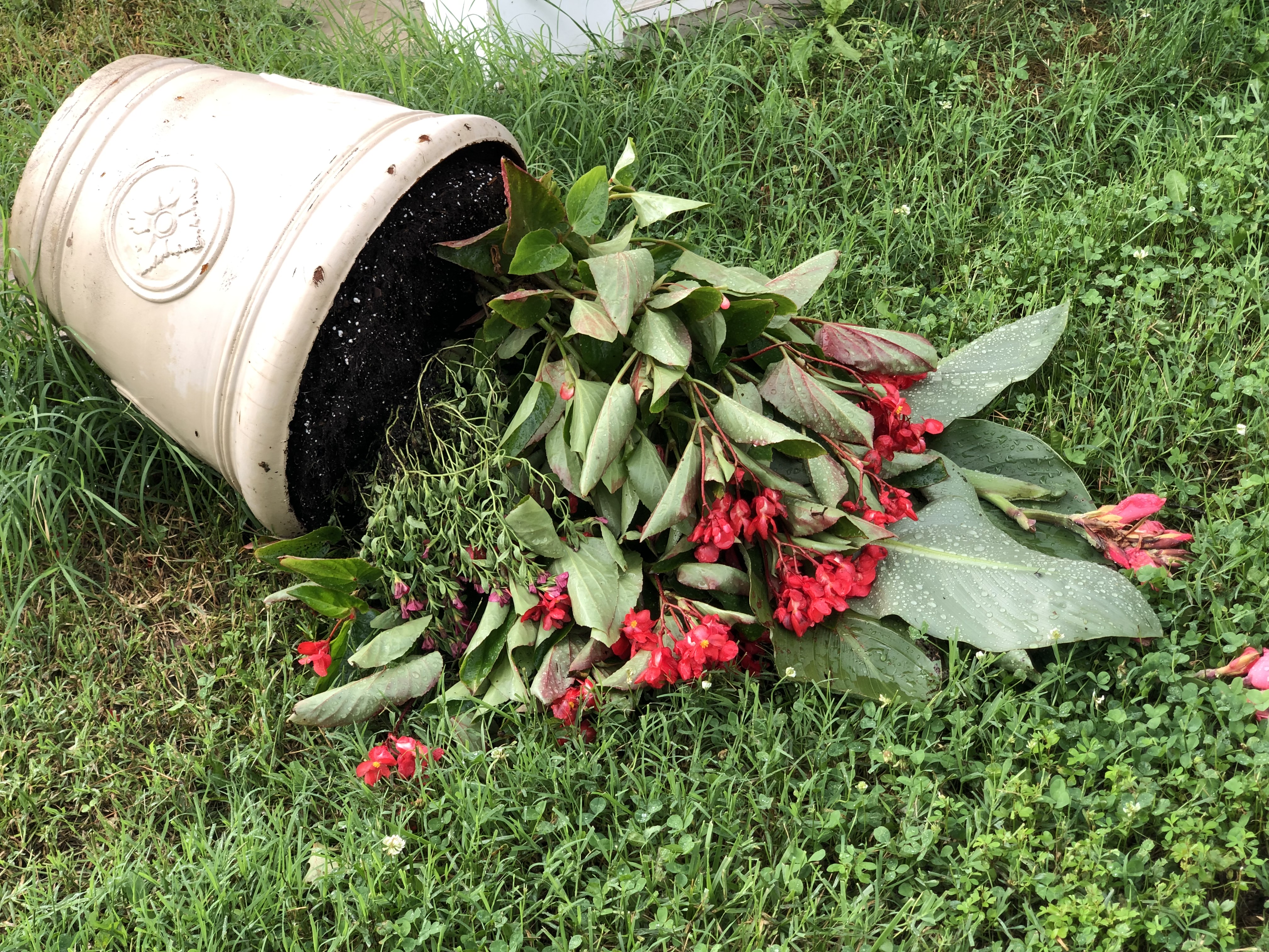 The wind was such that some of our very large flower pots on the outside of the barn…