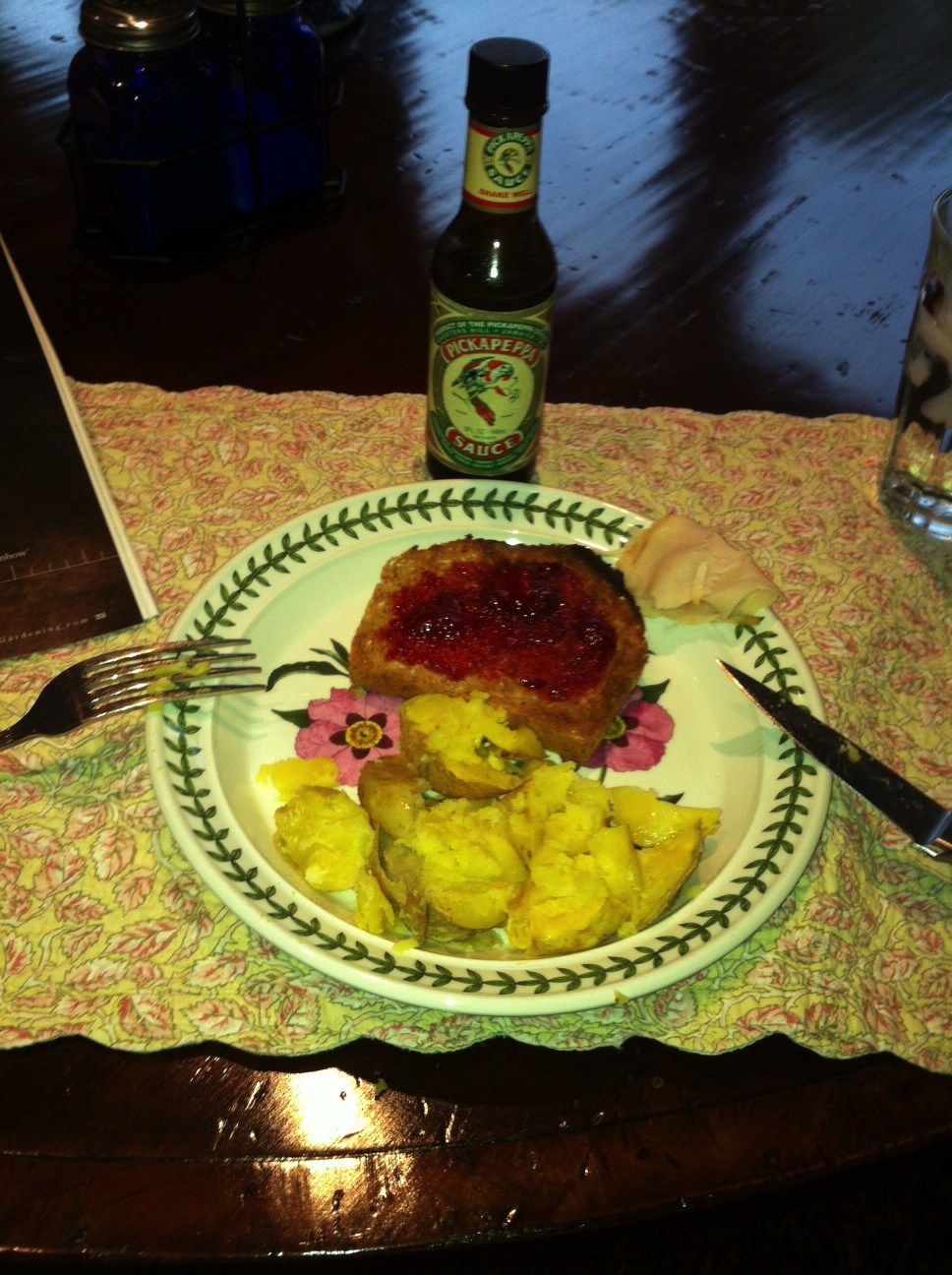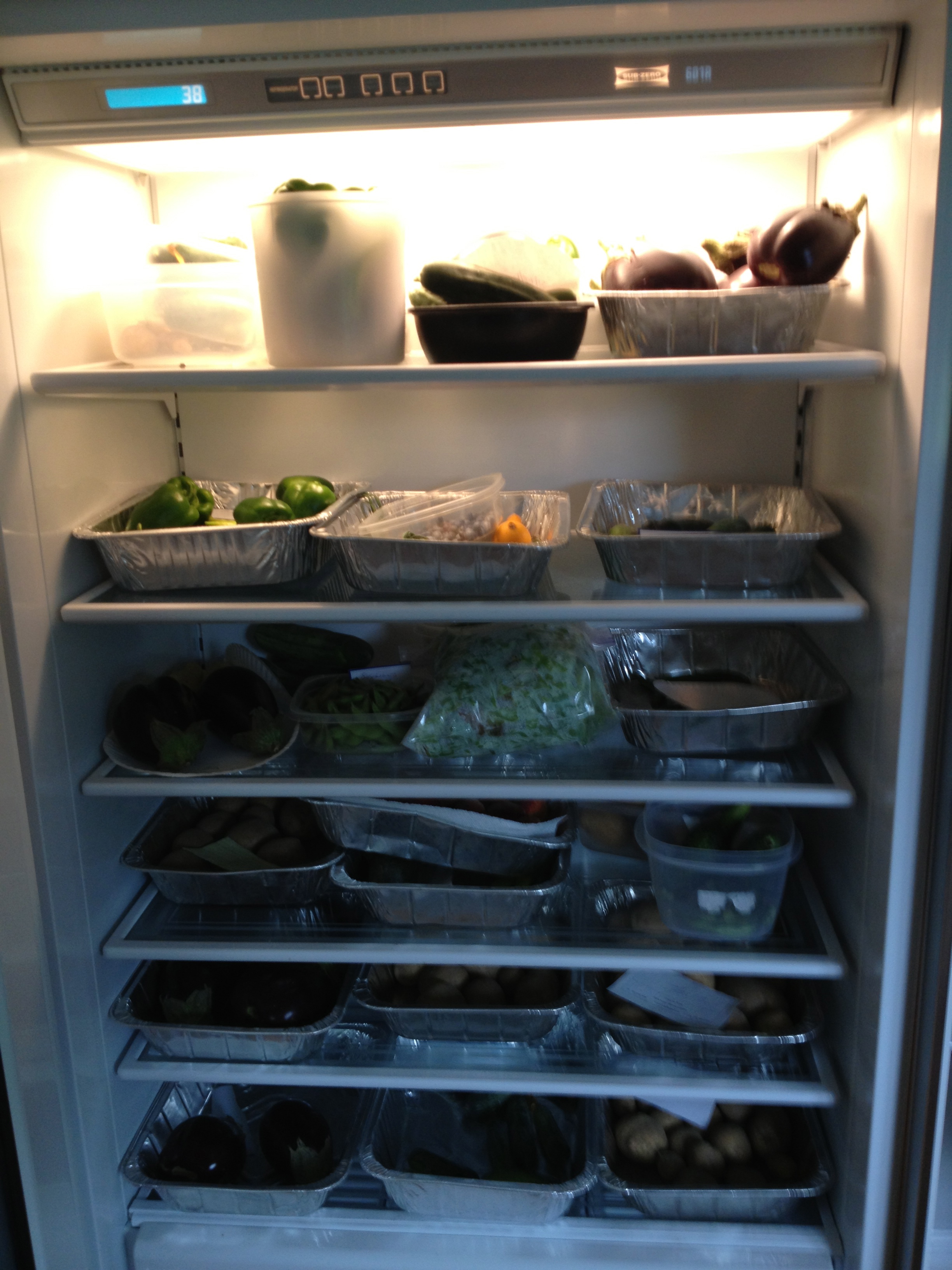 First you make your dough and set it aside to rise. I make mine in my Cuisinart and let it sit on my bread board under a glass bowl to rise. Your dough doesn’t require a timer….it can be made in the morning and sit all day or mixed together a bit later. I like to let it rise at least two hours, but the current thought is the longer is better. While the dough is rising, you can roast your cherry tomatoes. I put them in a very hot oven with just a bit of olive oil and salt and pepper. They look like this when done. Unctuous!