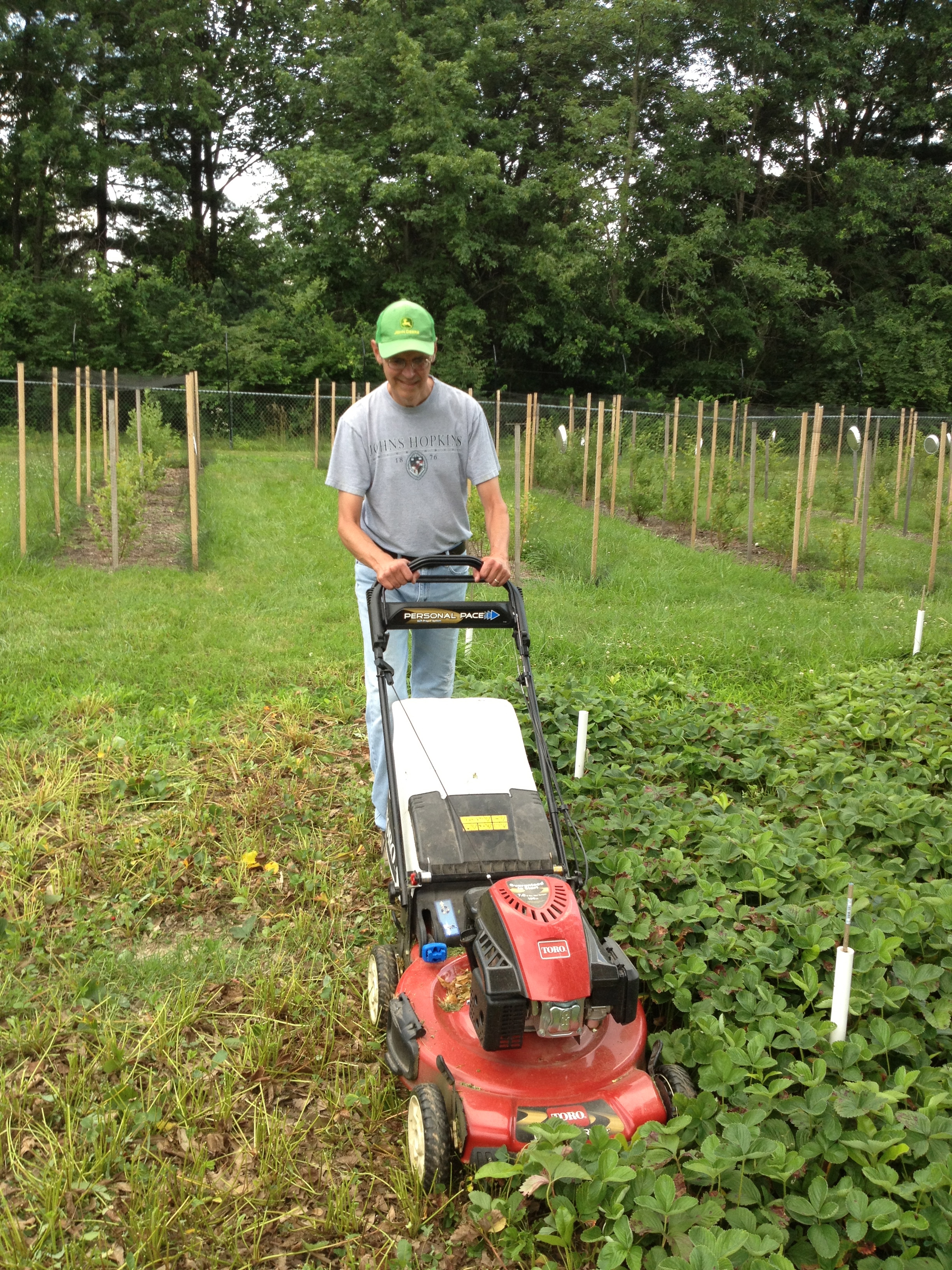 I picked blueberries again yesterday and would say that only one variety still has much to offer for the summer crop but I’m not surprised since we are coming up on a month of harvesting and have had reasonable results on such young plants. We lifted all the nets and mowed the perimeters yesterday and I weeded one of the five sections as well. We think our netting seems to be doing the trick, but I observed a bird yesterday as he was trying desperately to find a way into the netted areas.