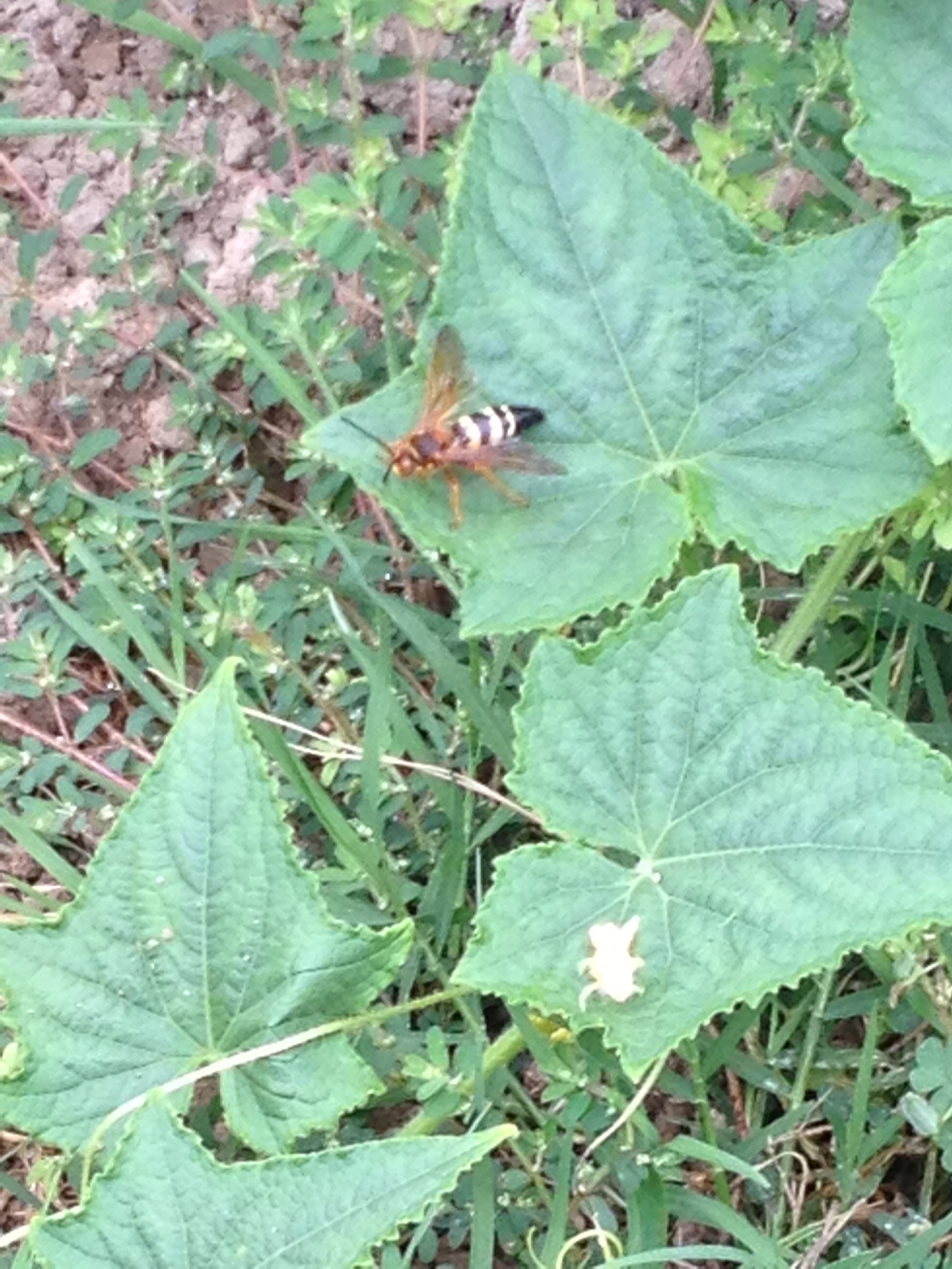 While I’m on the subject of insects, (before talking of pizza making!) the Cicada Killer Wasps, Sphecius speciosus, have also returned. I had never heard of these flying insects until we experienced them here the last two years. The idea that they kill Cicadas is interesting…a part of the cycle of nature…but with a name that has ‘wasp’ in the title, we were a bit put off at first. In the end, there is little downside of the presence of these insects to us since the cicadas do more damage to our trees than the wasps do to our fields.