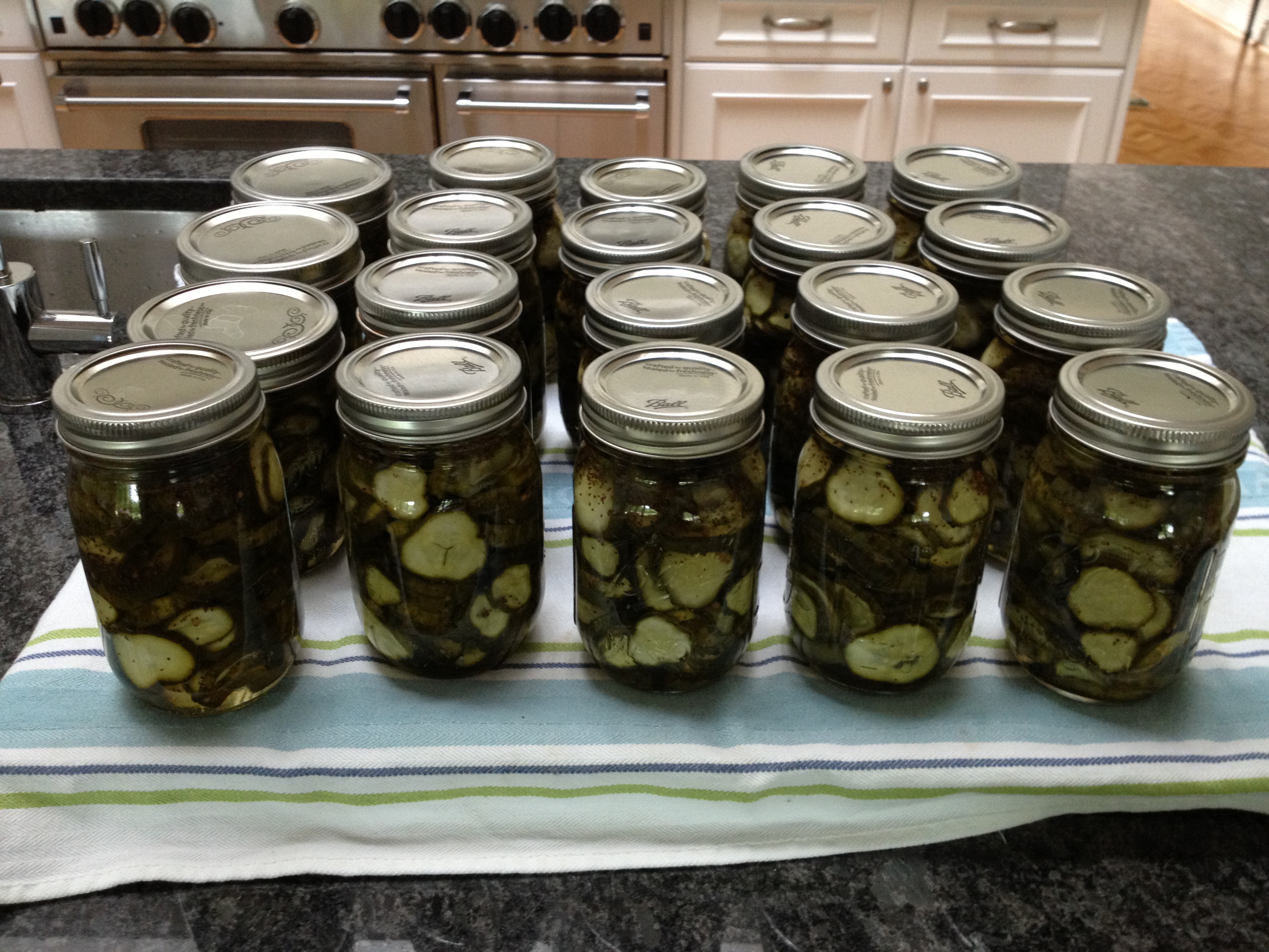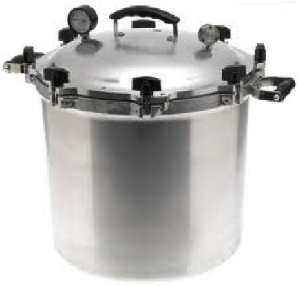 I spent some time on line recently reading about this and realized that I would feel much better with a pressure cooker that had a readable gauge on it to better calculate the pressure necessary (in other words how much heat) to exert on my jars when cooked with my Goliath of a stove top. I’m now in love with the All American Canner Company and their products! http://www.allamericancanner.com/ This is what I ordered.