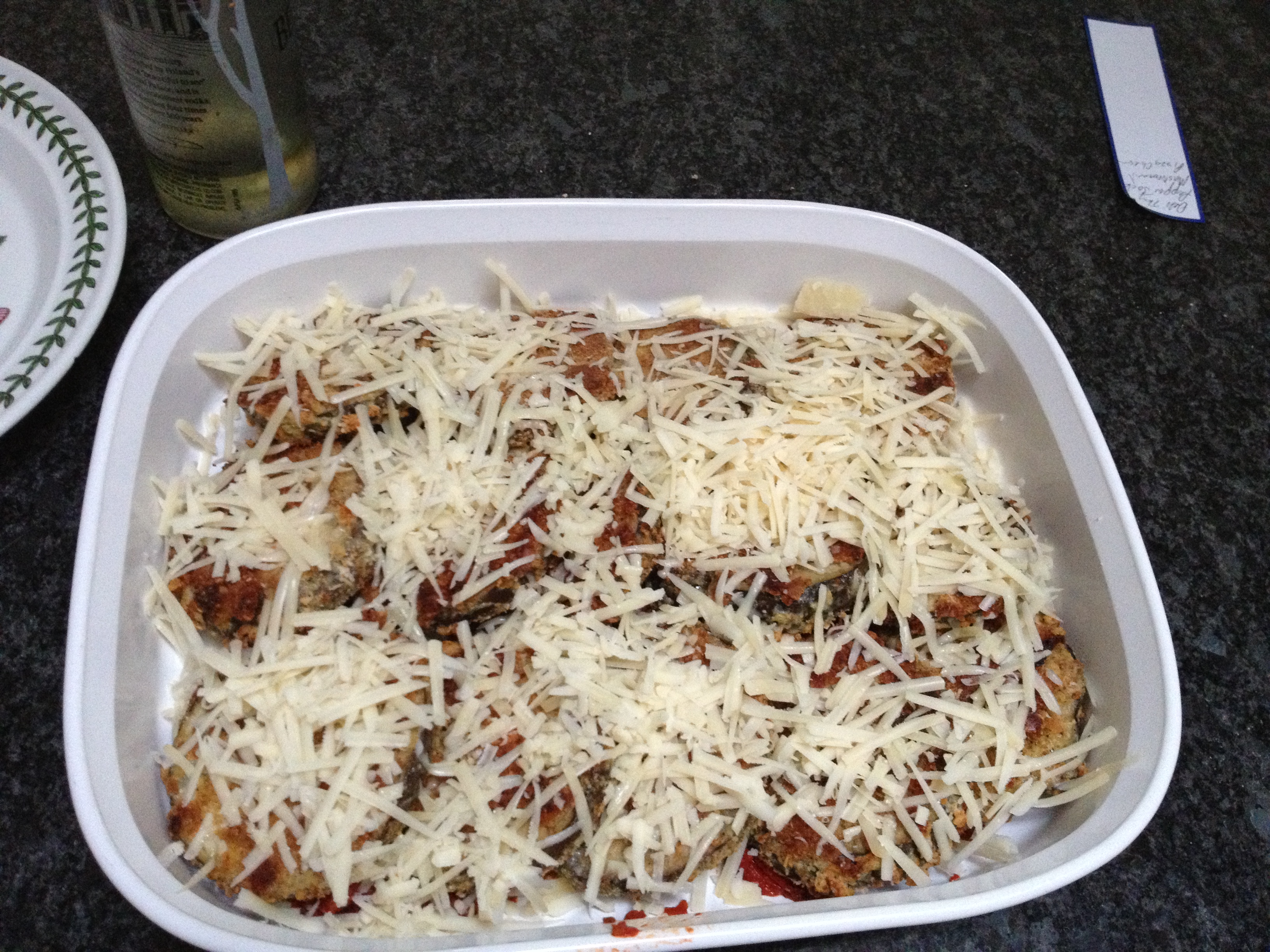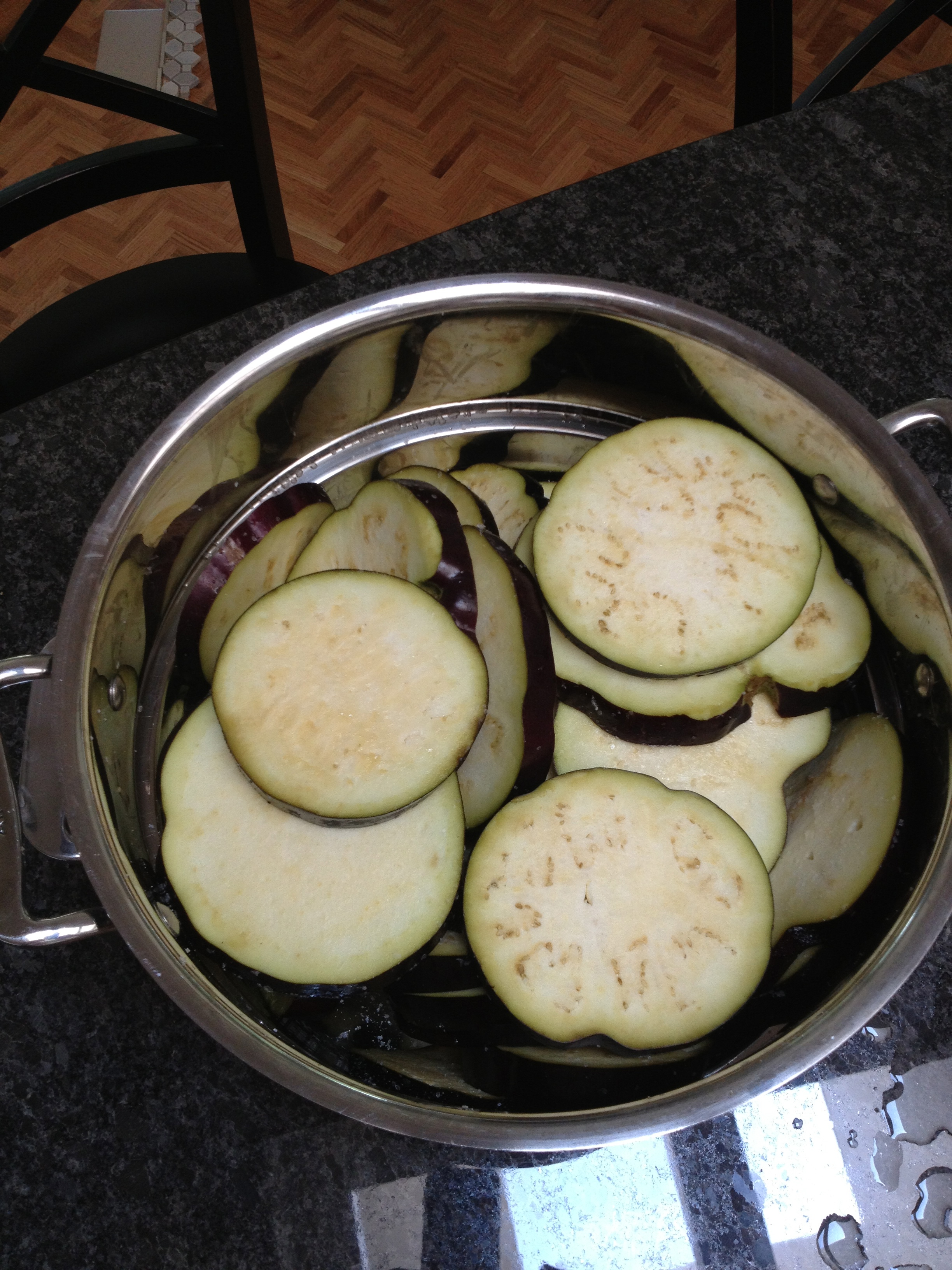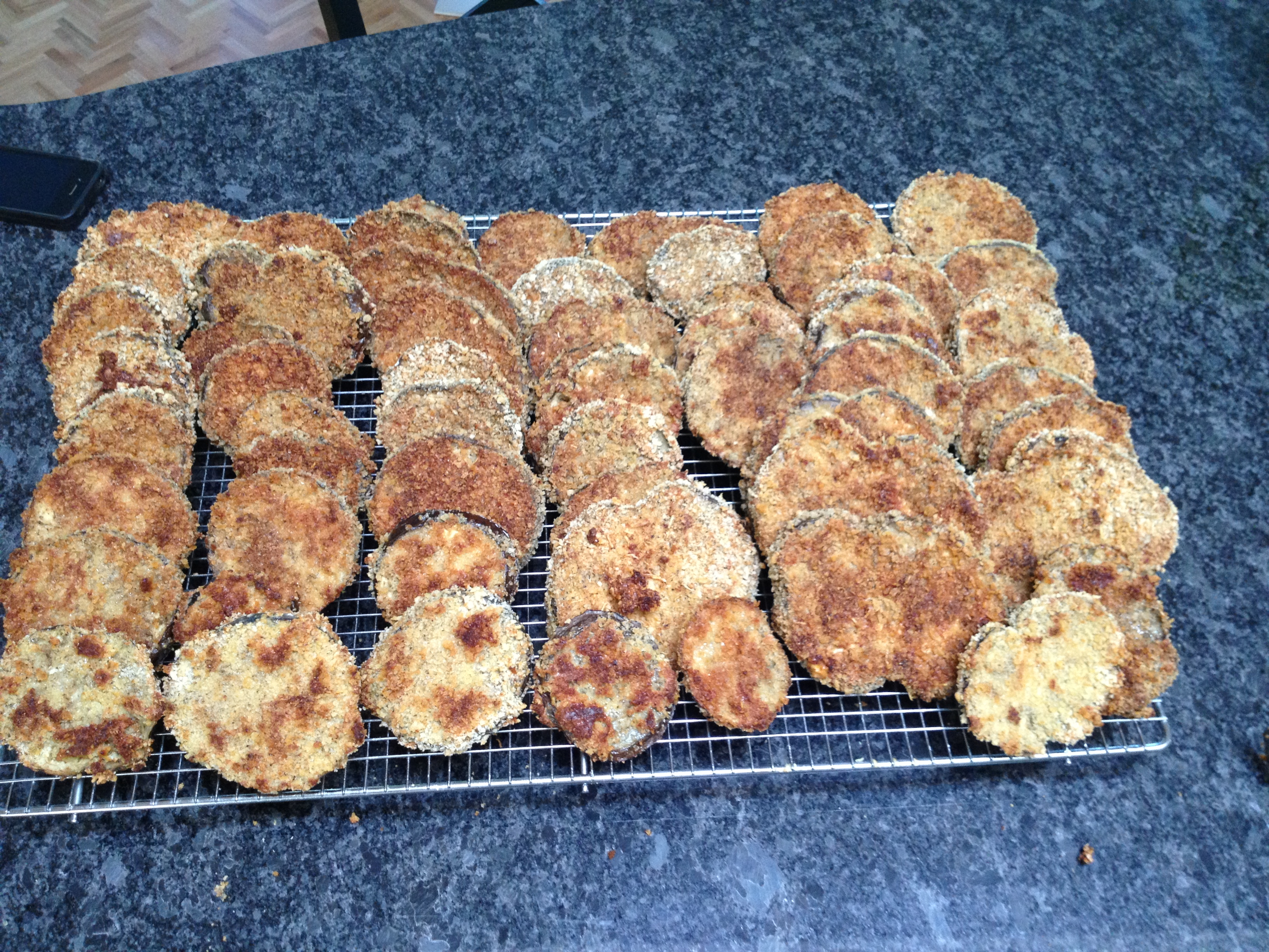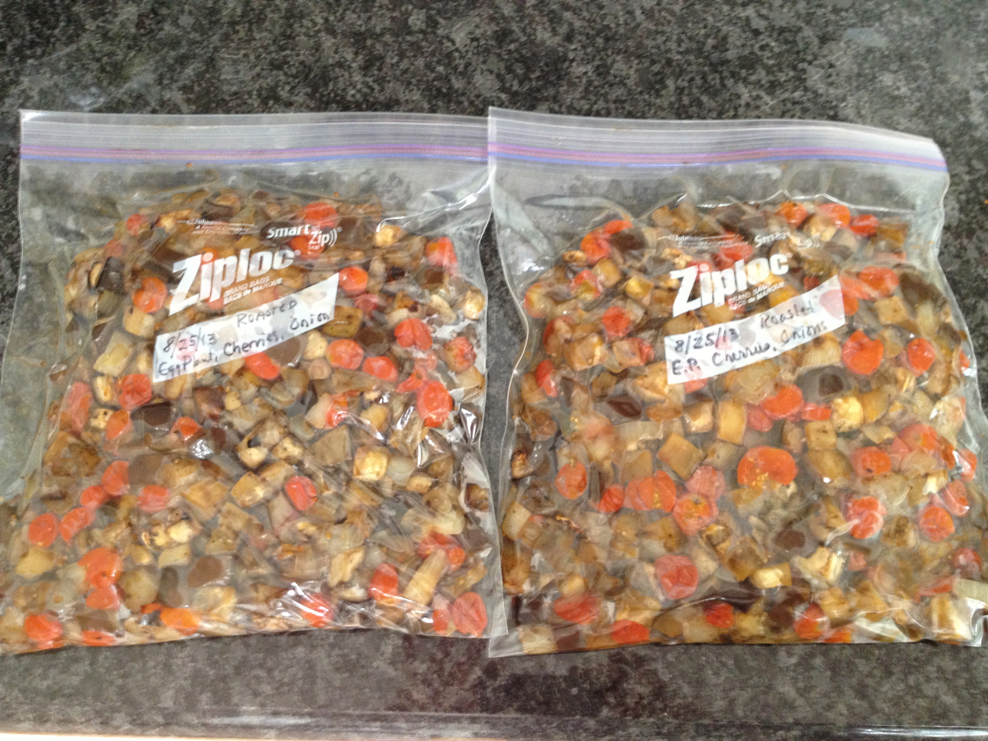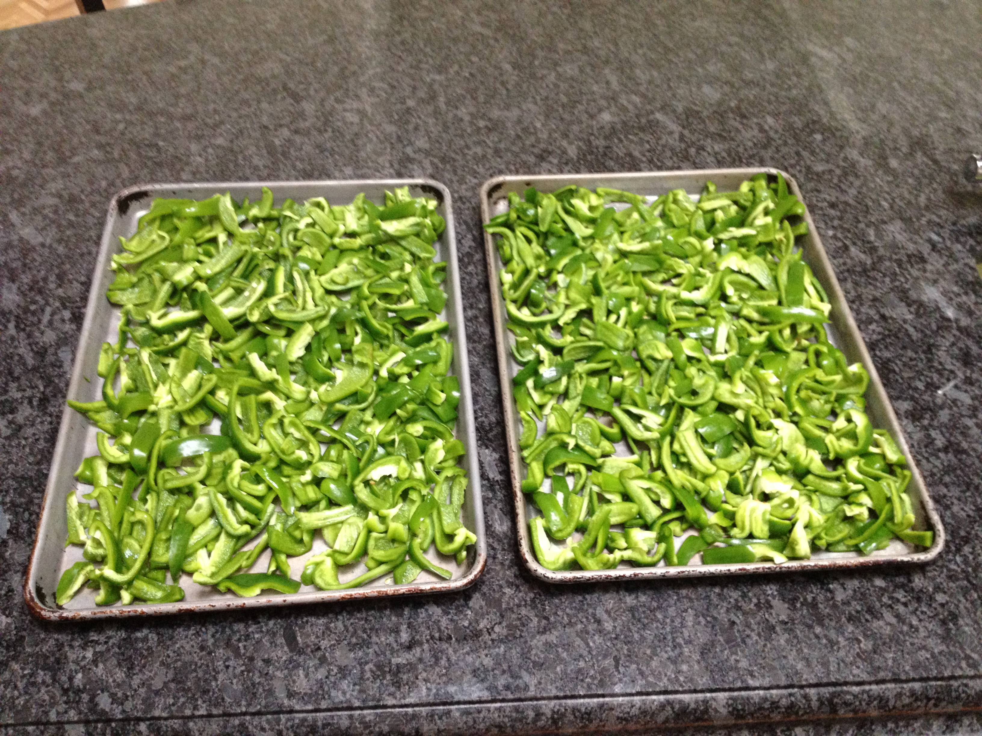 I chopped up some eggplants, green peppers, onions and roasted them on high heat in the oven.