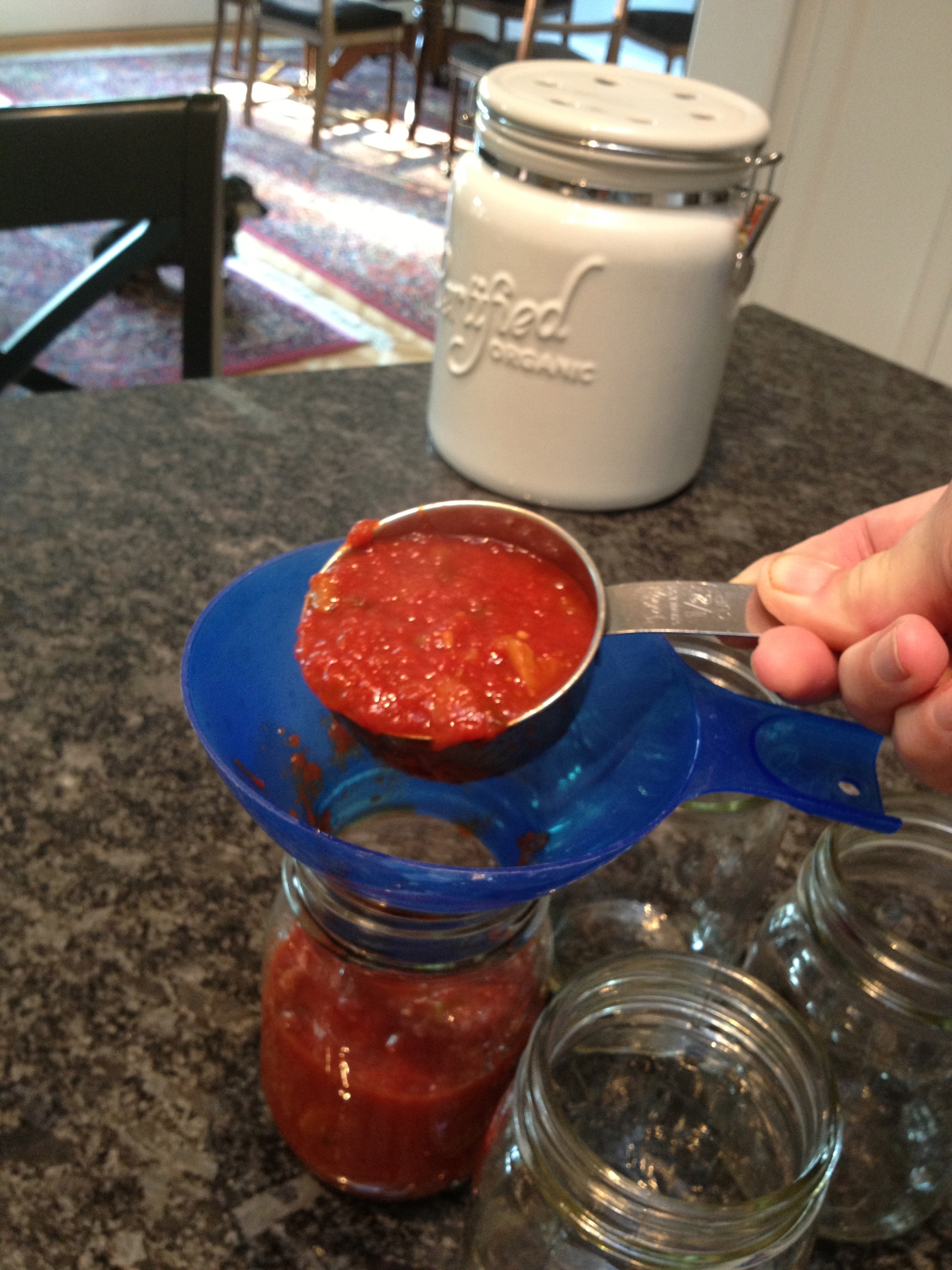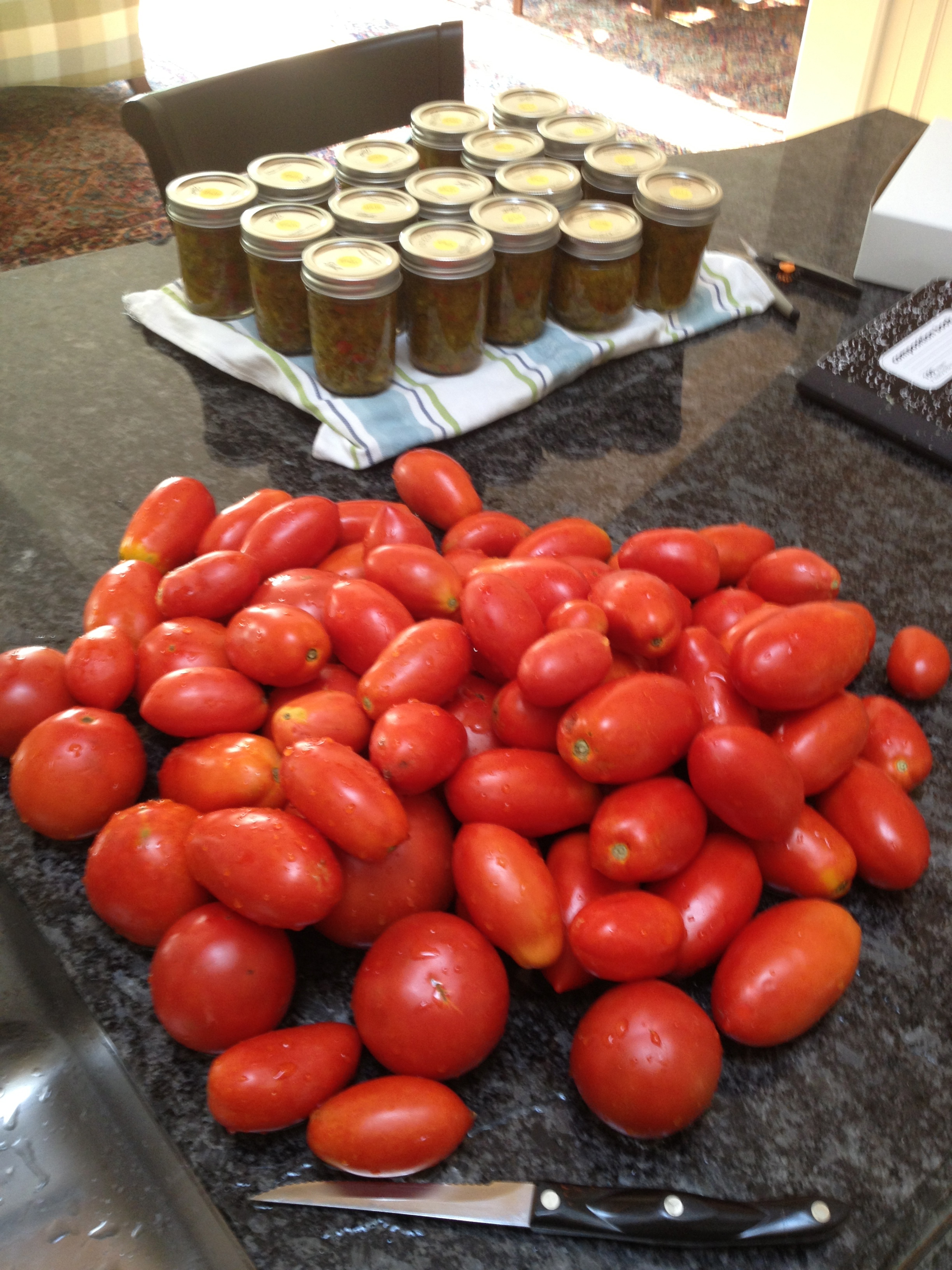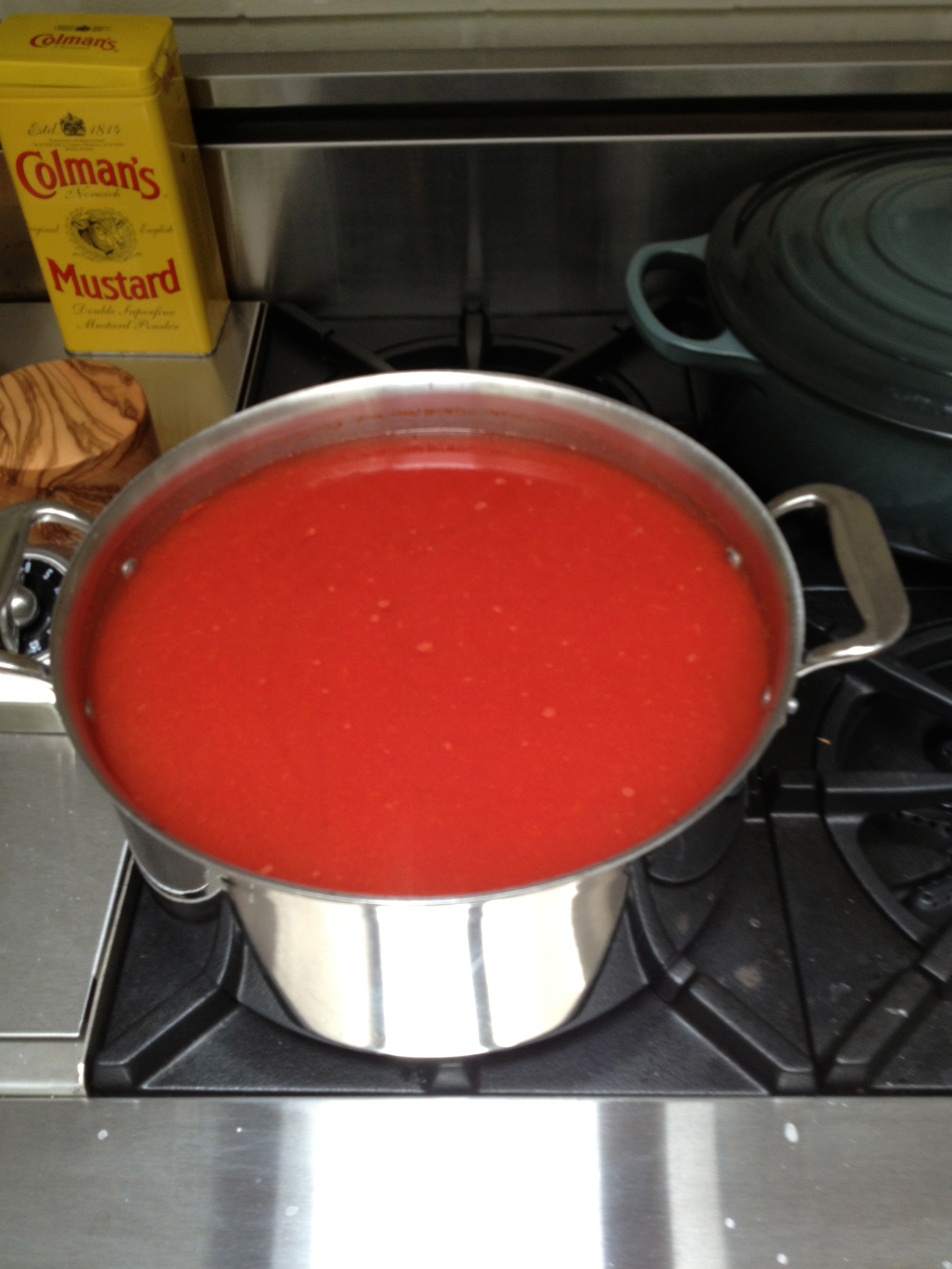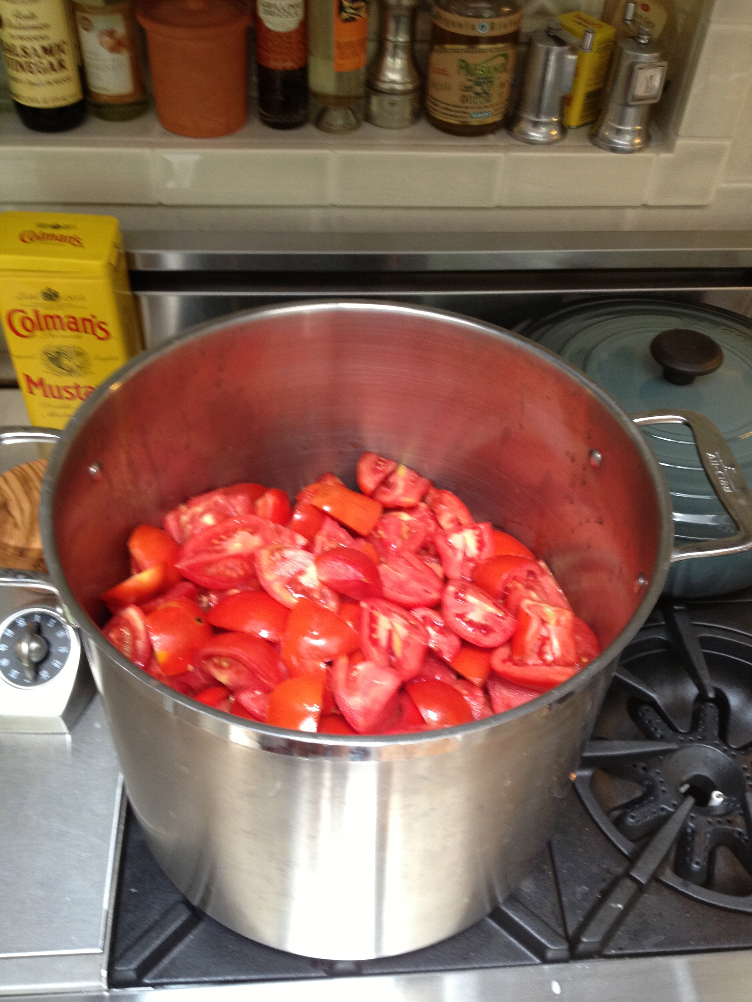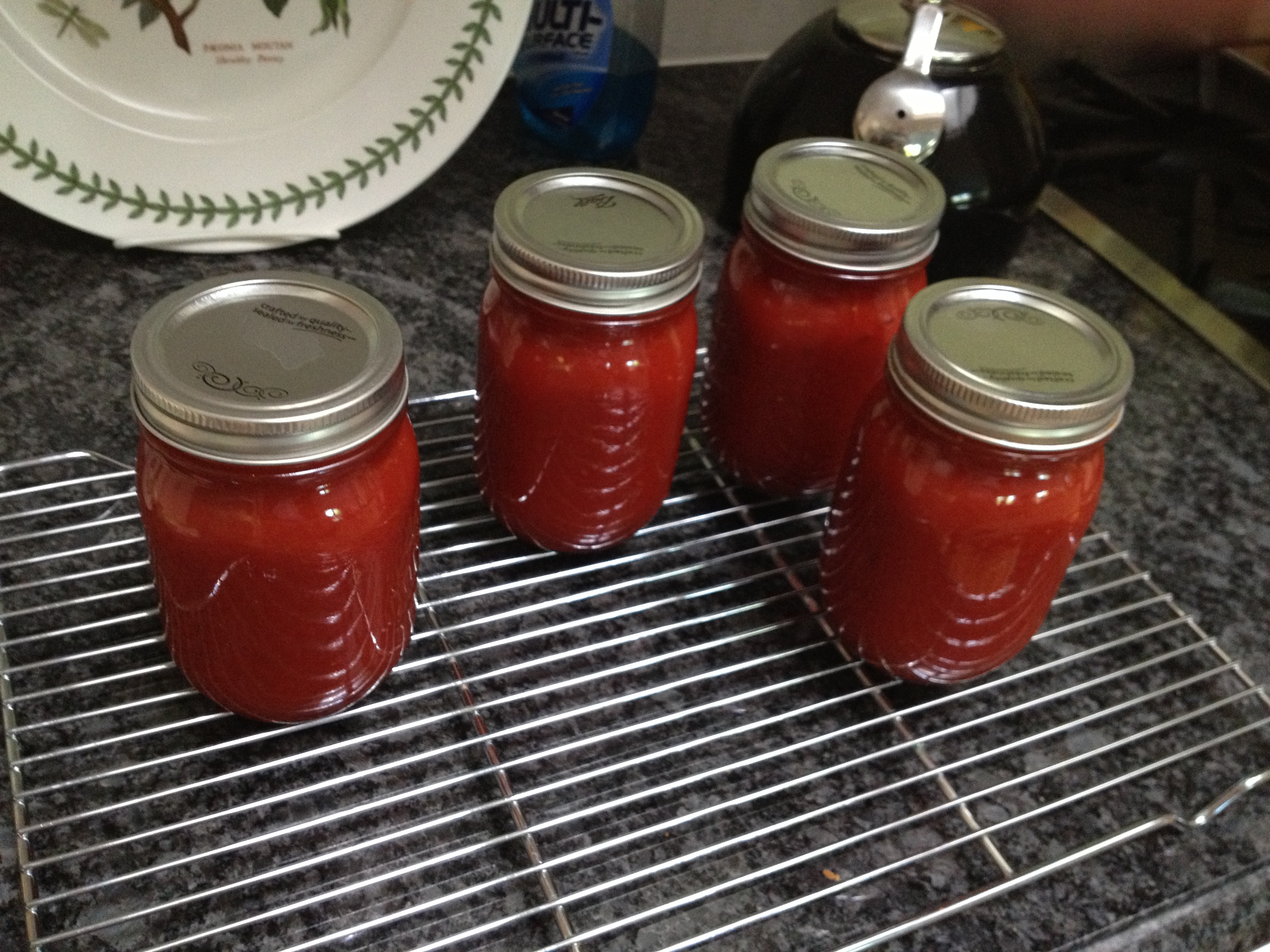 Yesterday morning (at 8am) I started on a double batch of ketchup using 16 pounds of dead ripe tomatoes.