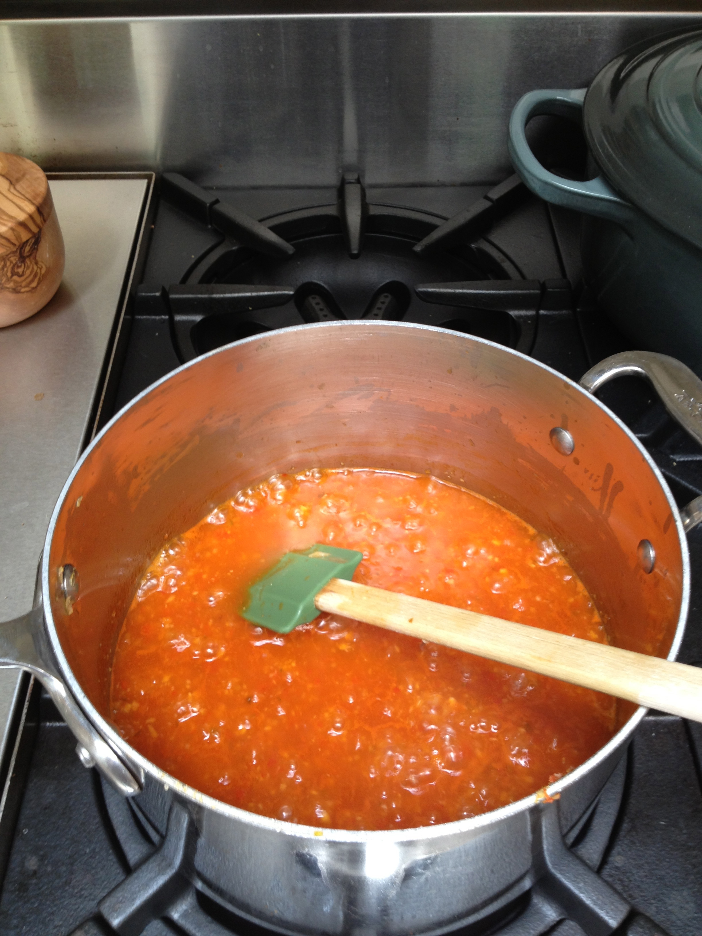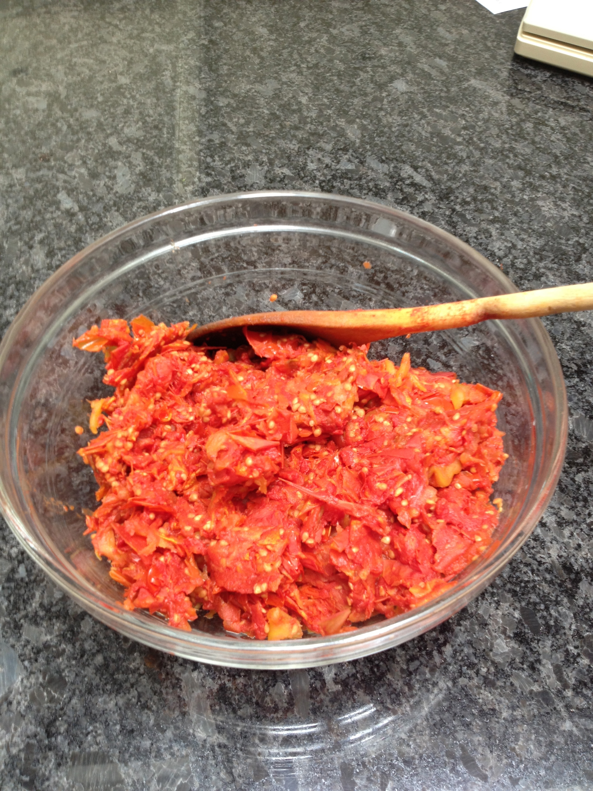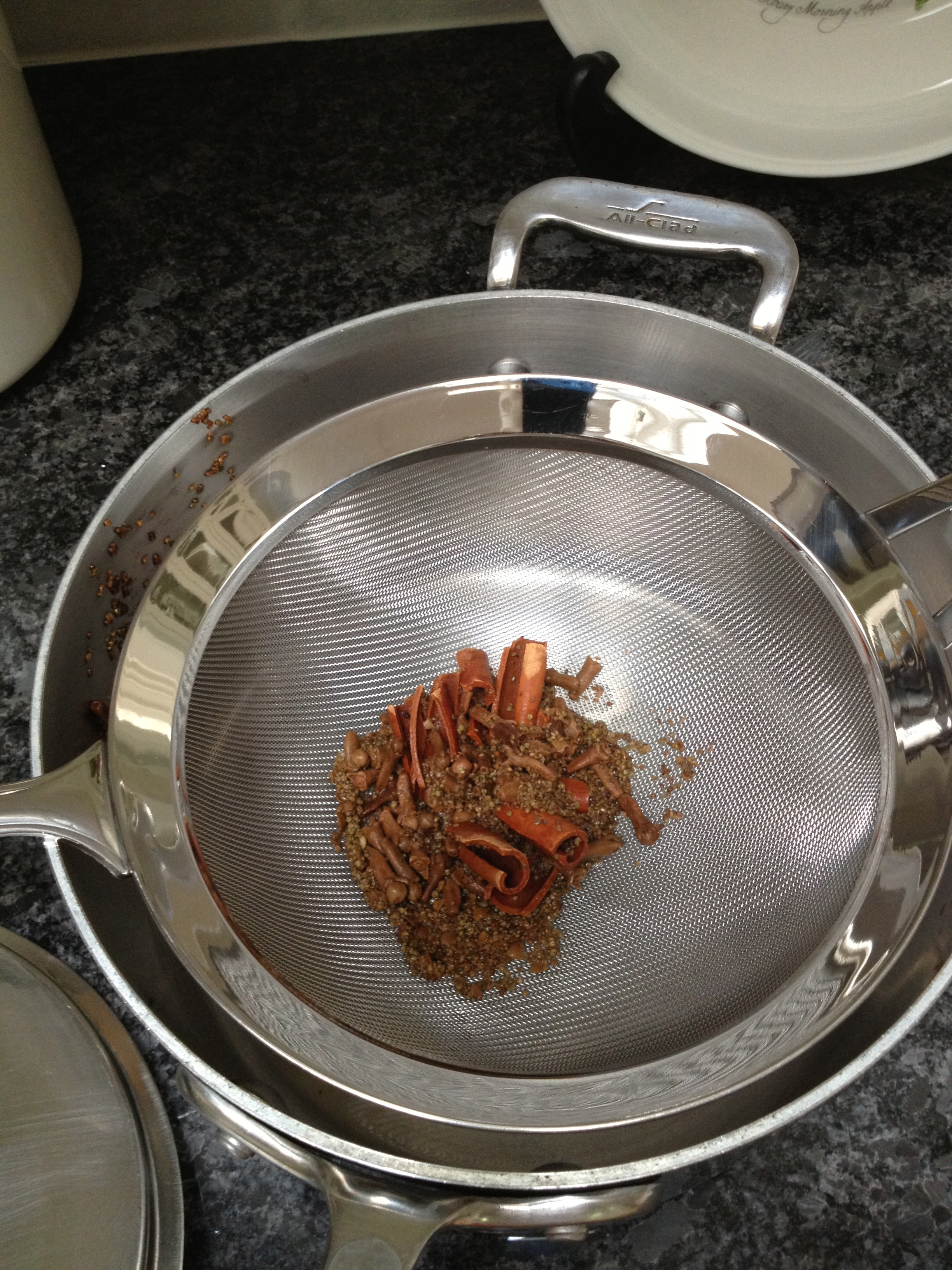I then strained the spiced mixture and added it to the tomato sauce.