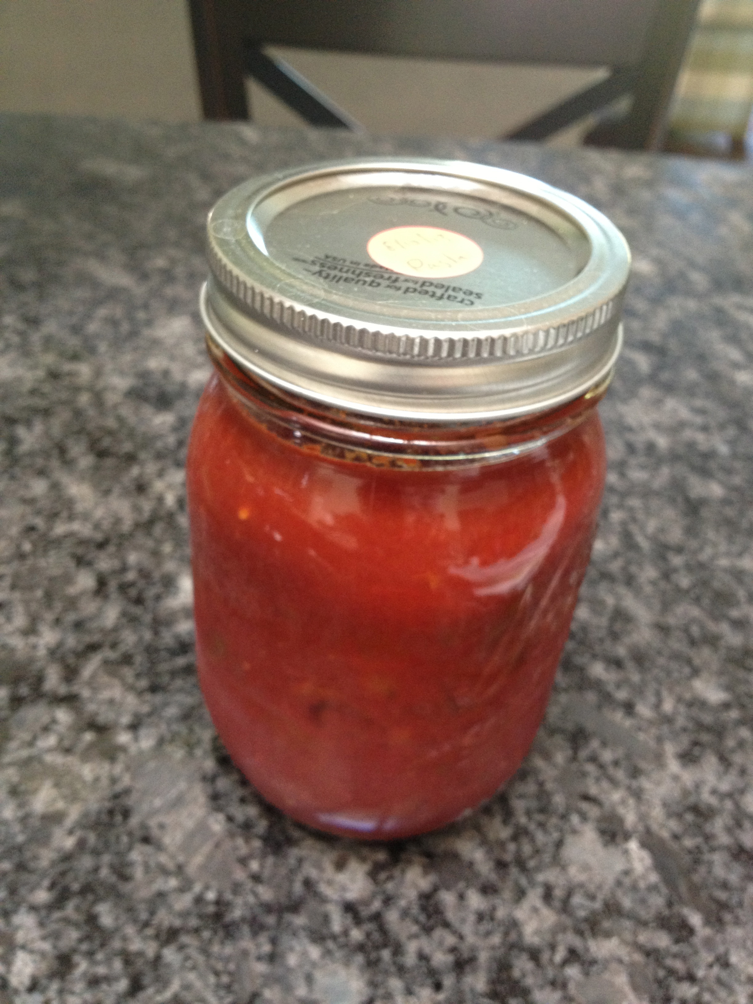 I carefully popped this precious gold into half pints before cooking them in a water bath. You do the math…that is 2 pounds of tomatoes per half pint of ketchup!