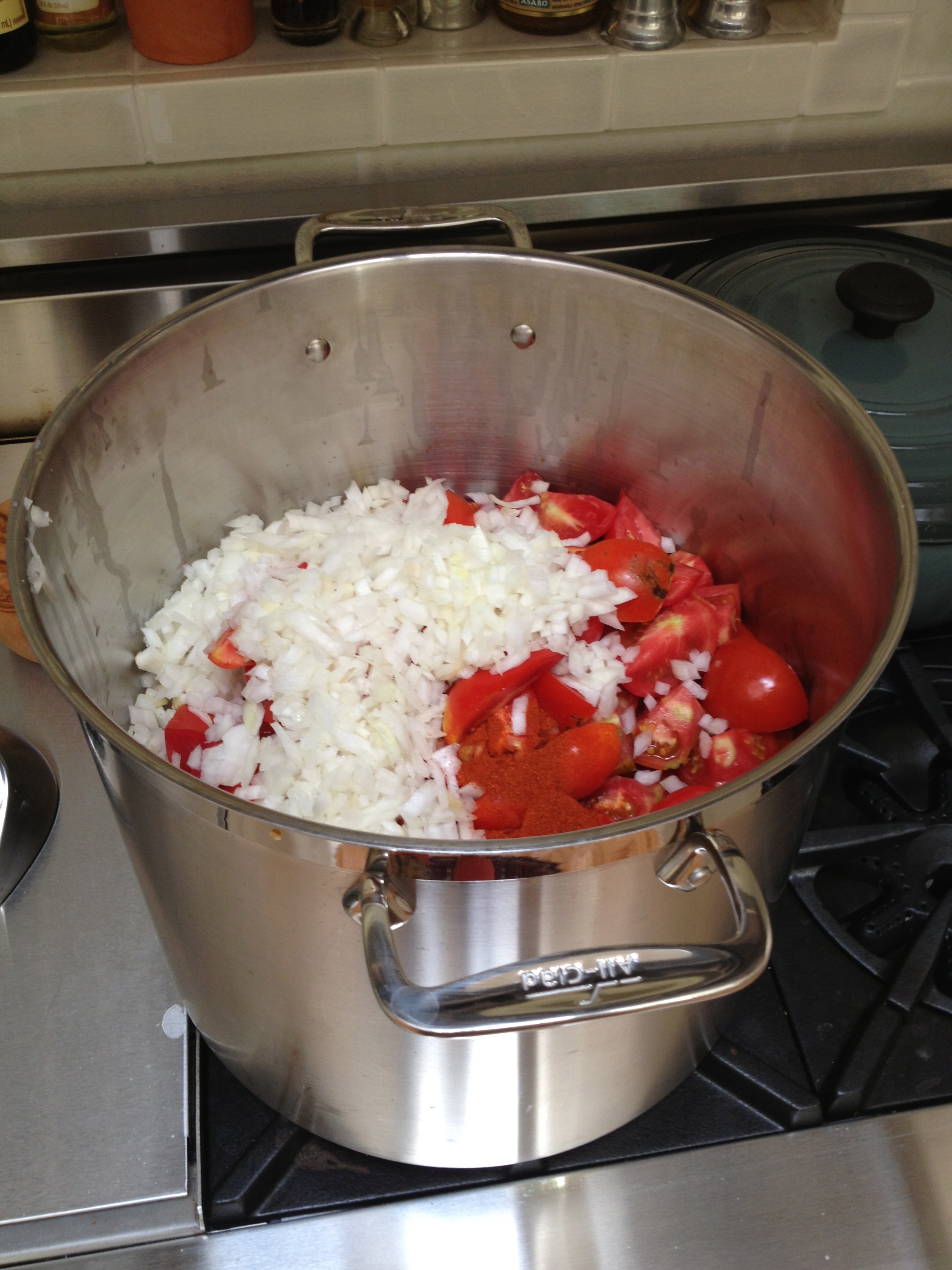 These are a precious commodity this year since the cool weather is keeping down the production. With this cool trend continuing for so long, I’m worried the plants may get tricked into thinking it is fall already! As I mentioned, when making ketchup, you cook the tomatoes with diced onion for enhanced flavor.
