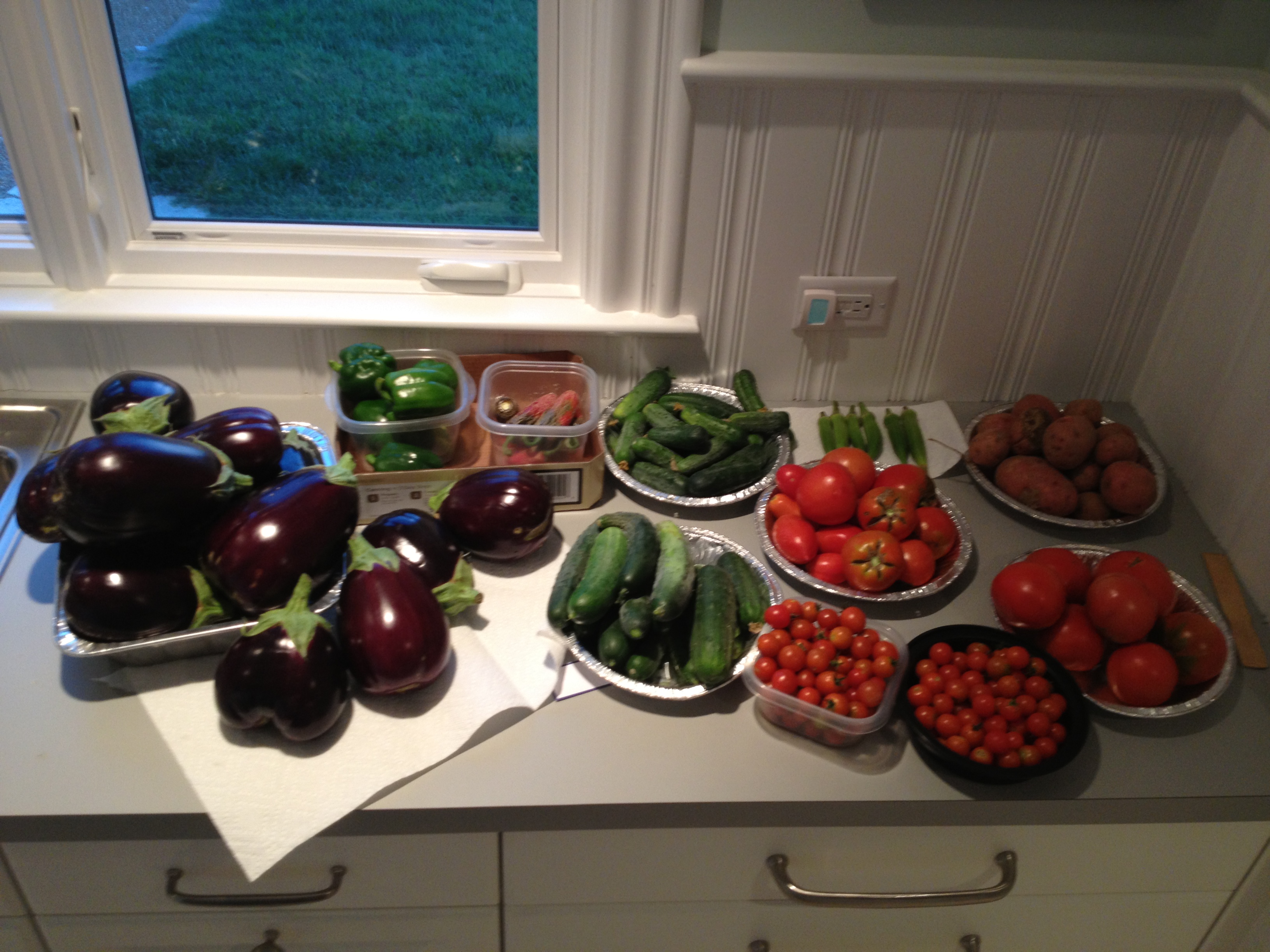 Dave is still out working on the daily harvest but his numbers from the past day or two have put us over 700 pounds of produce for the year so far. Although the weather has been enjoyable, we are wishing we had some warmer days to ripen the melons in our patch. We hope that a slower ripening time will not ill affect their flavor. Many people tell me that farmers complain about the weather no matter what it is! We seem to be in this category despite the delight that others are cheering about with this mild summer.