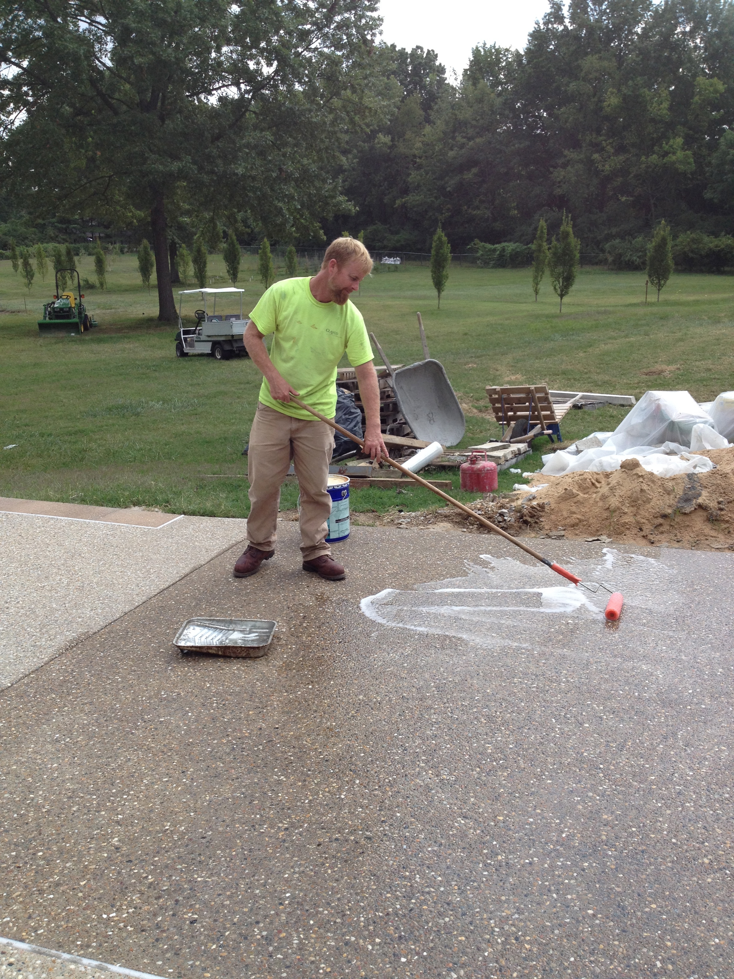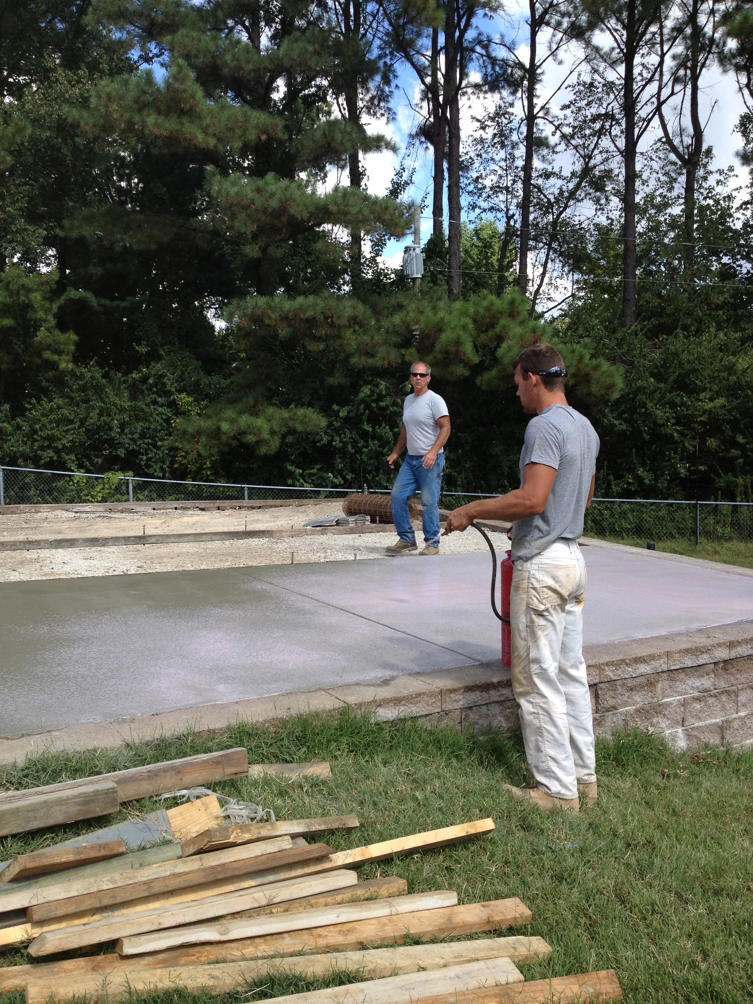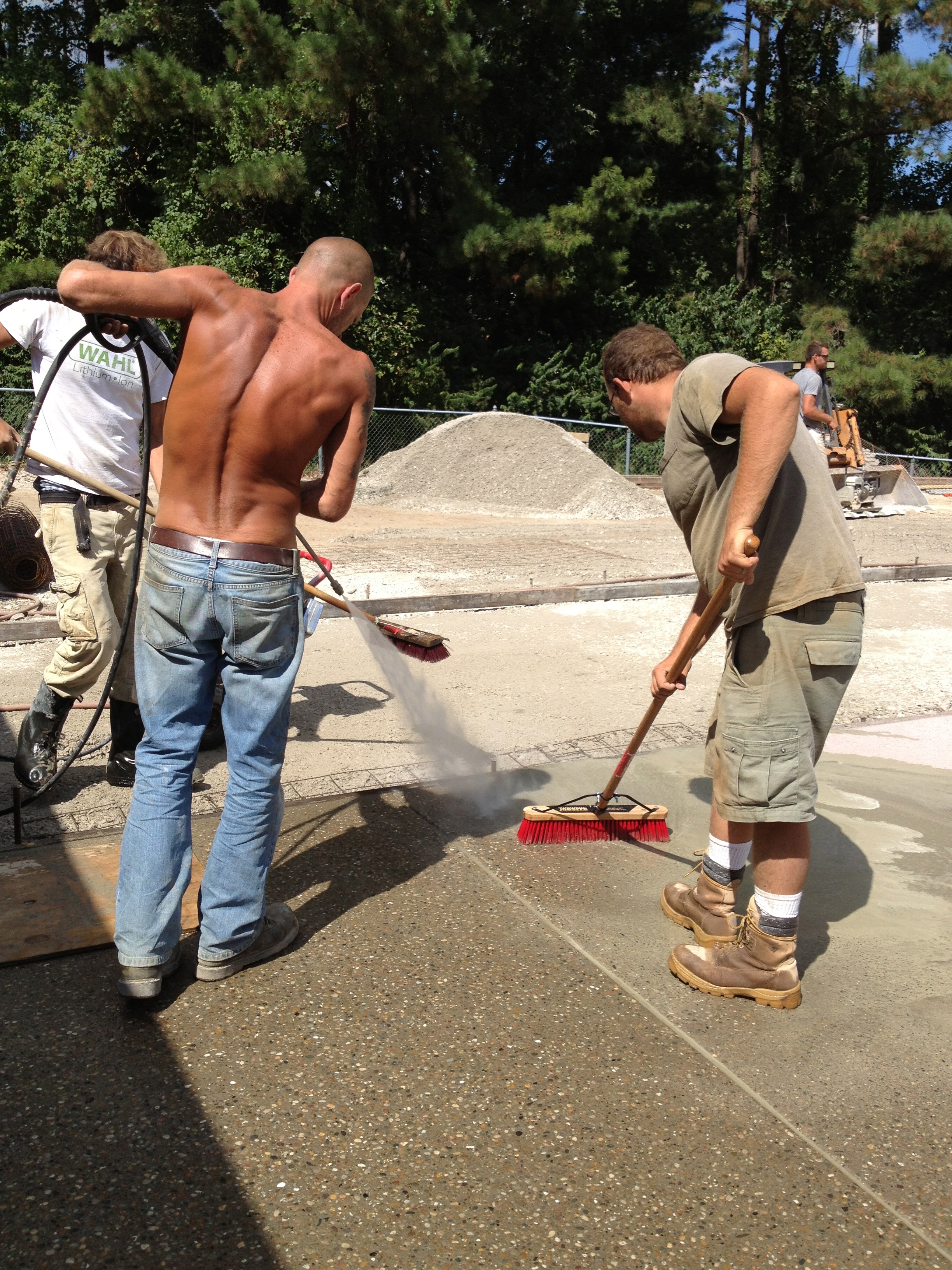 As the crew continues to form and pour the new sections in the front, the rear sections were starting to be acid washed and then sealed.