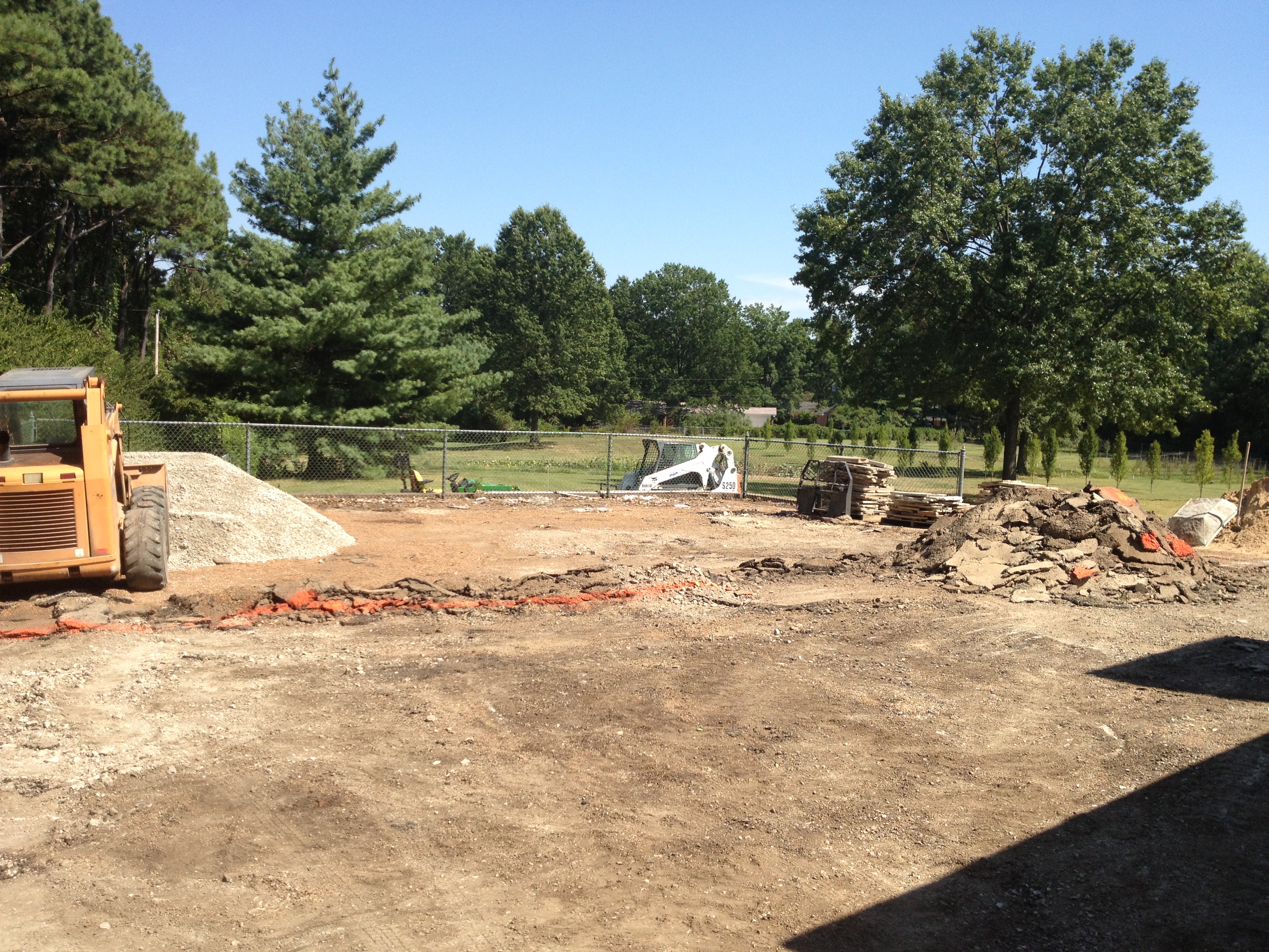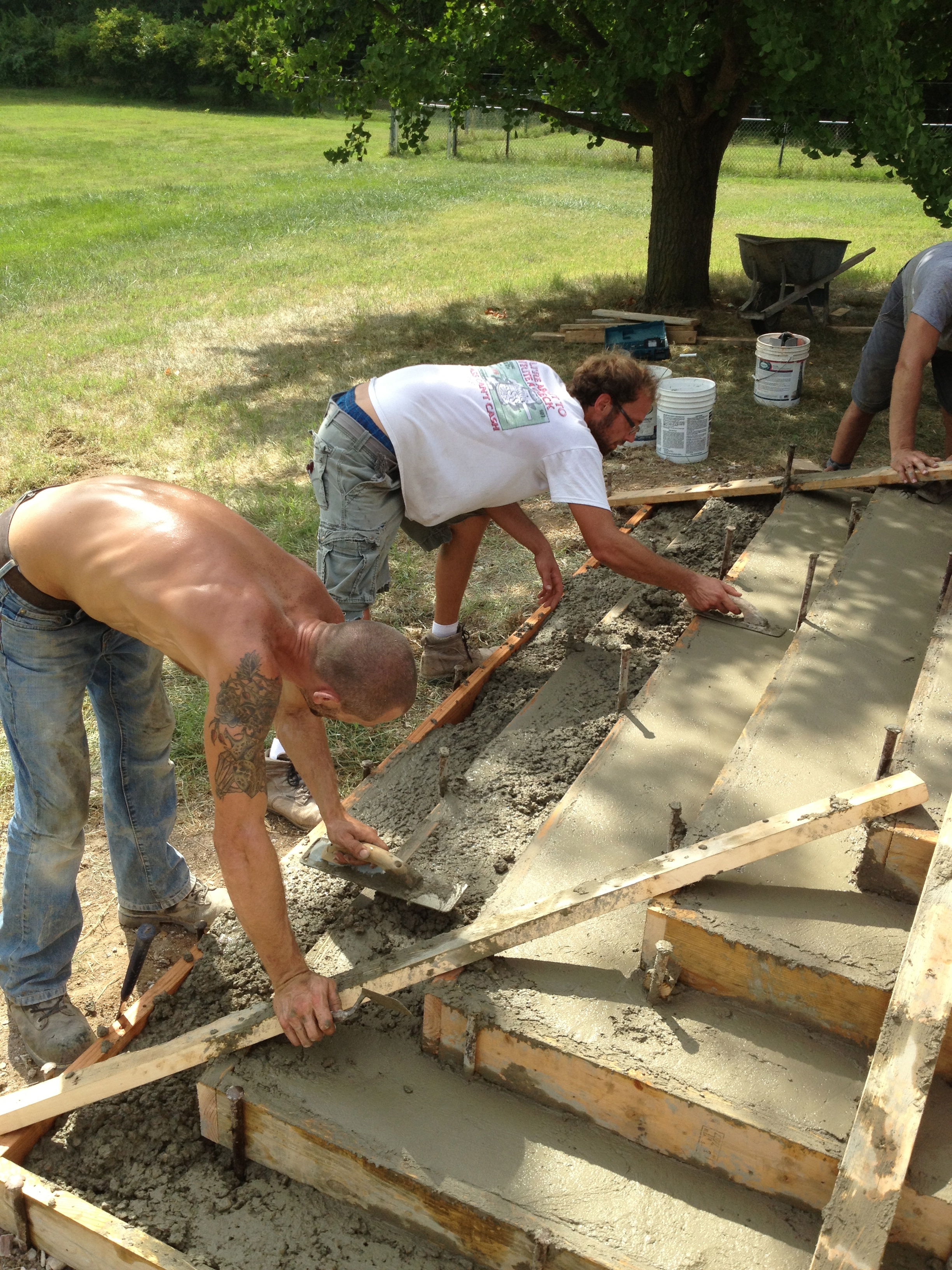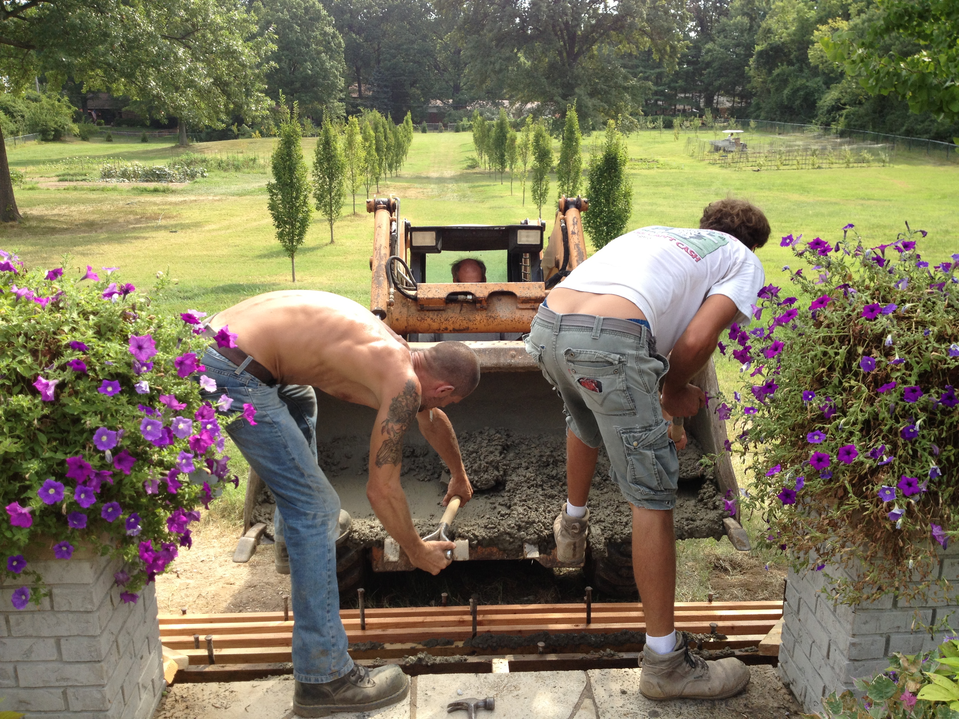 As the crew continues to form and pour the new sections in the front, the rear sections were starting to be acid washed and then sealed.