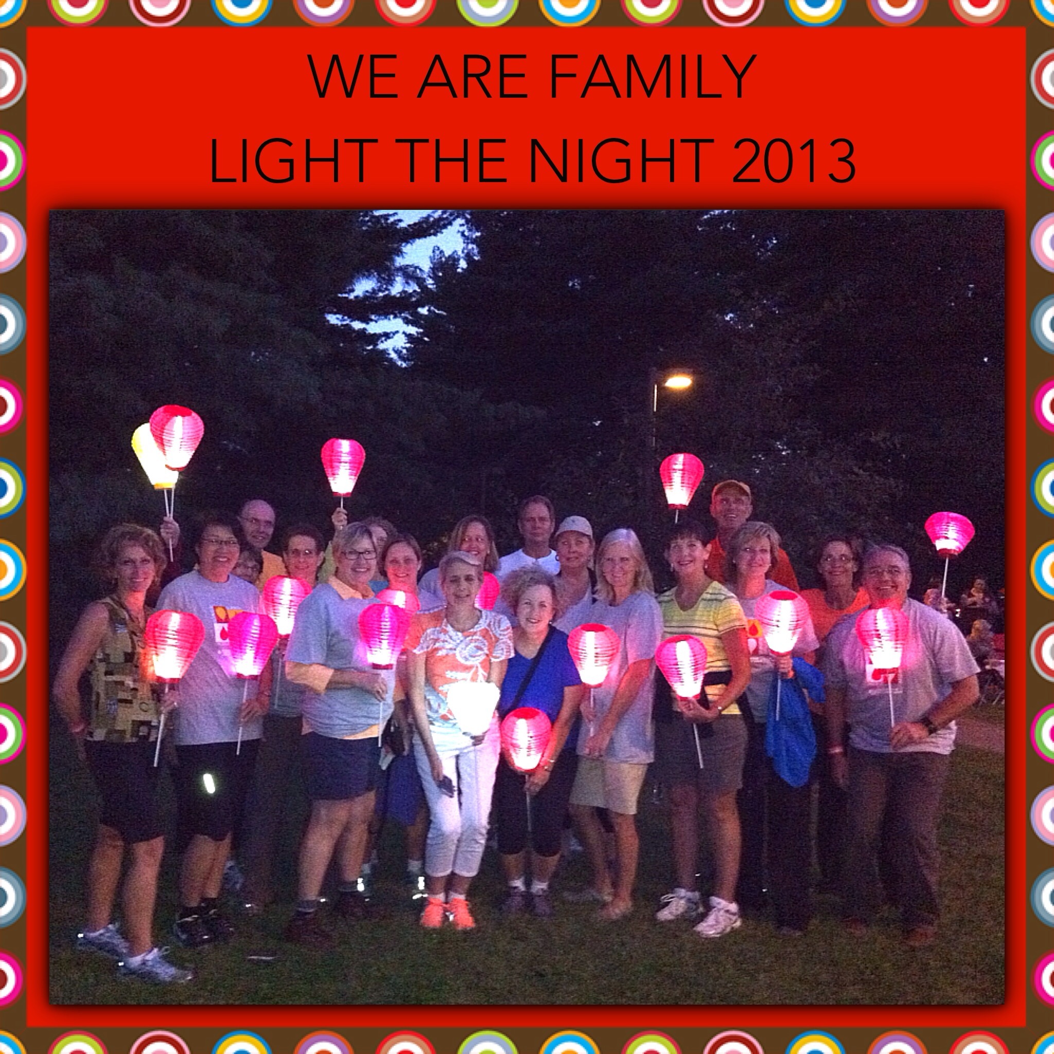 I think she understood since she is a dog lover too. Here is a photo of the team that walked in the We Are Family! group that night. The best news is that Kathy’s health is on a positive trend and she enjoyed the company of friends and family at the LLA walk. I wish I had been able to join the group!