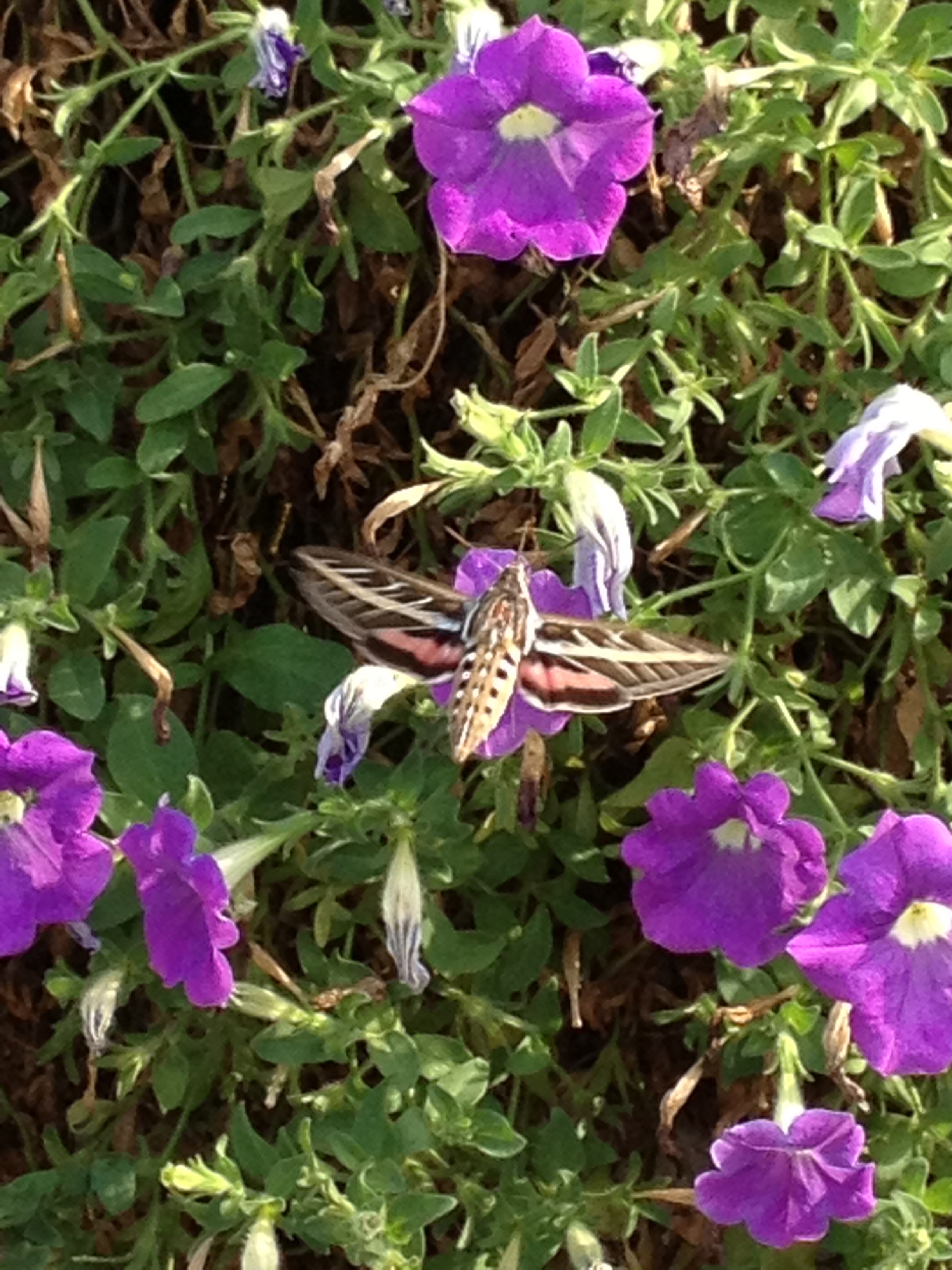 I would like to acknowledge that my friend, Brenda Zanola, correctly pointed out that the hummingbird moth that I had cited in my earlier post, was indeed, the Sphinx Moth aka, a ‘hummingbird’ moth due to its proclivities in the nectar gathering world, but is solidly in the moth category rather than the aviary group. I happened to find one on the sidewalk the other day to photograph…sadly, it may have been due to his imminent demise