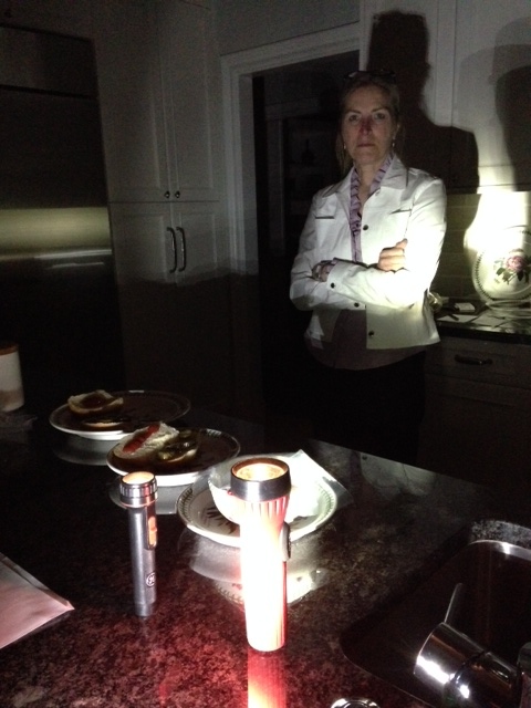 We lost power for about 5 hours that afternoon which would not have been so bad except that I had planned to have the family all over for dinner that night. It was fortunate that just about everything I had planned for dinner could be put off for another night. Our natural gas generator kicked in immediately so we did not suffer much except that the kitchen lights were somehow taken off of the generator panel at some point along the way so while we were watching TV in one room, we were using flashlights to cook by in the kitchen. As you can see, I was a bit perplexed by this as I prepared a little picnic dinner that night.