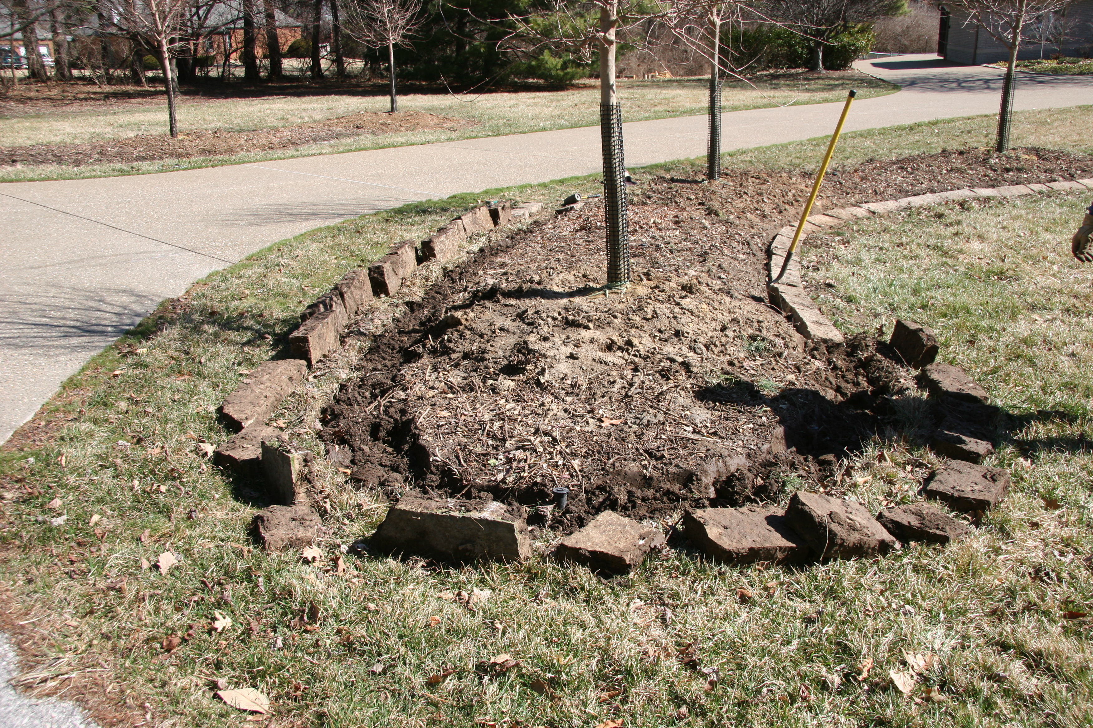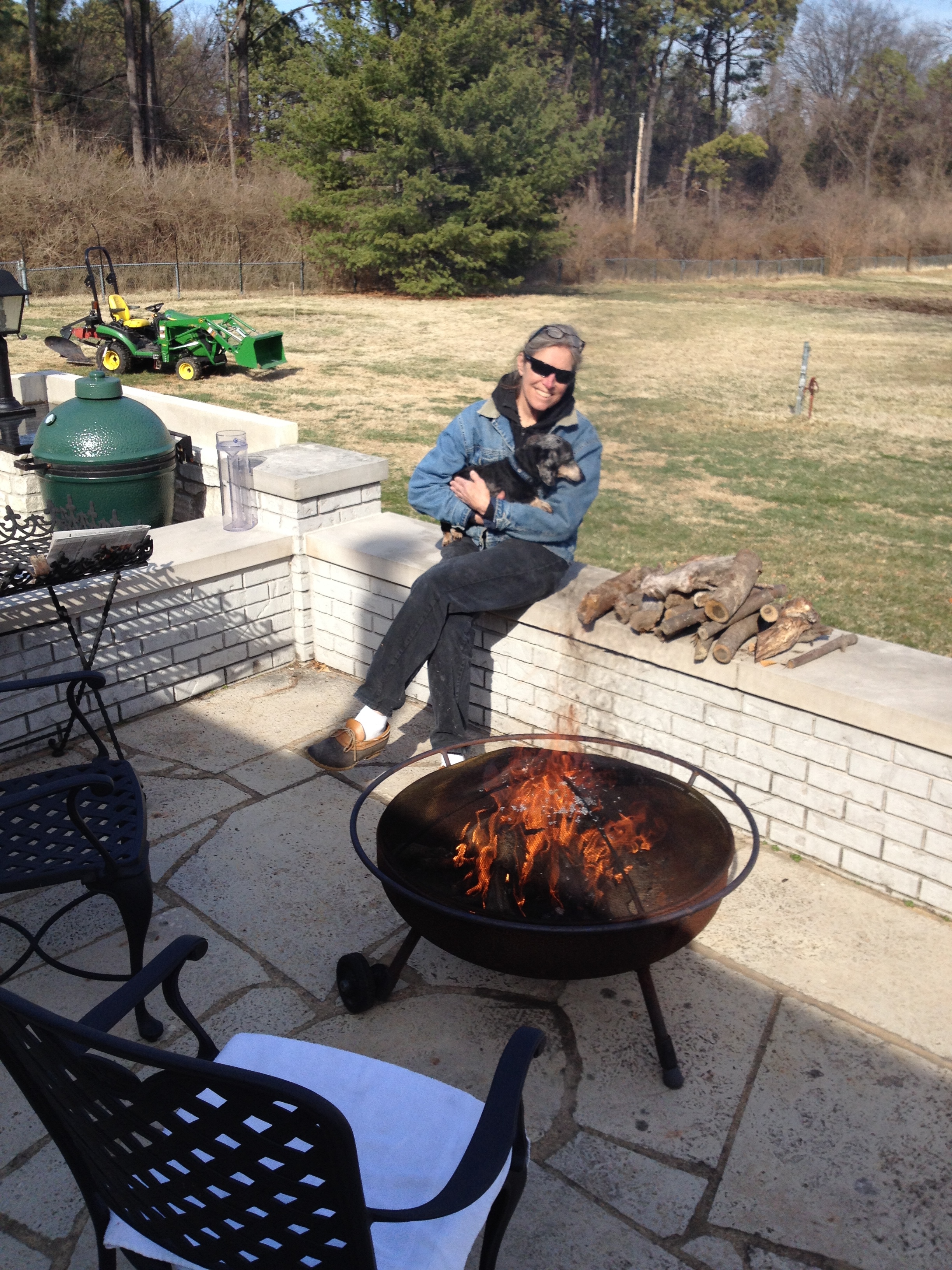 We did some additional clean up of winter leaves from the terrace and the pots and had Farley tagging along most of the day before building a fire in the outdoor pit. We are trying to use up some of the old woody trees we have chopped down over the years and it was nice to sit for a few minutes to reflect on the days accomplishments! Of course we also use the ashes from our wood fires to augment the plants in our landscape beds so it seemed like a win – win activity.