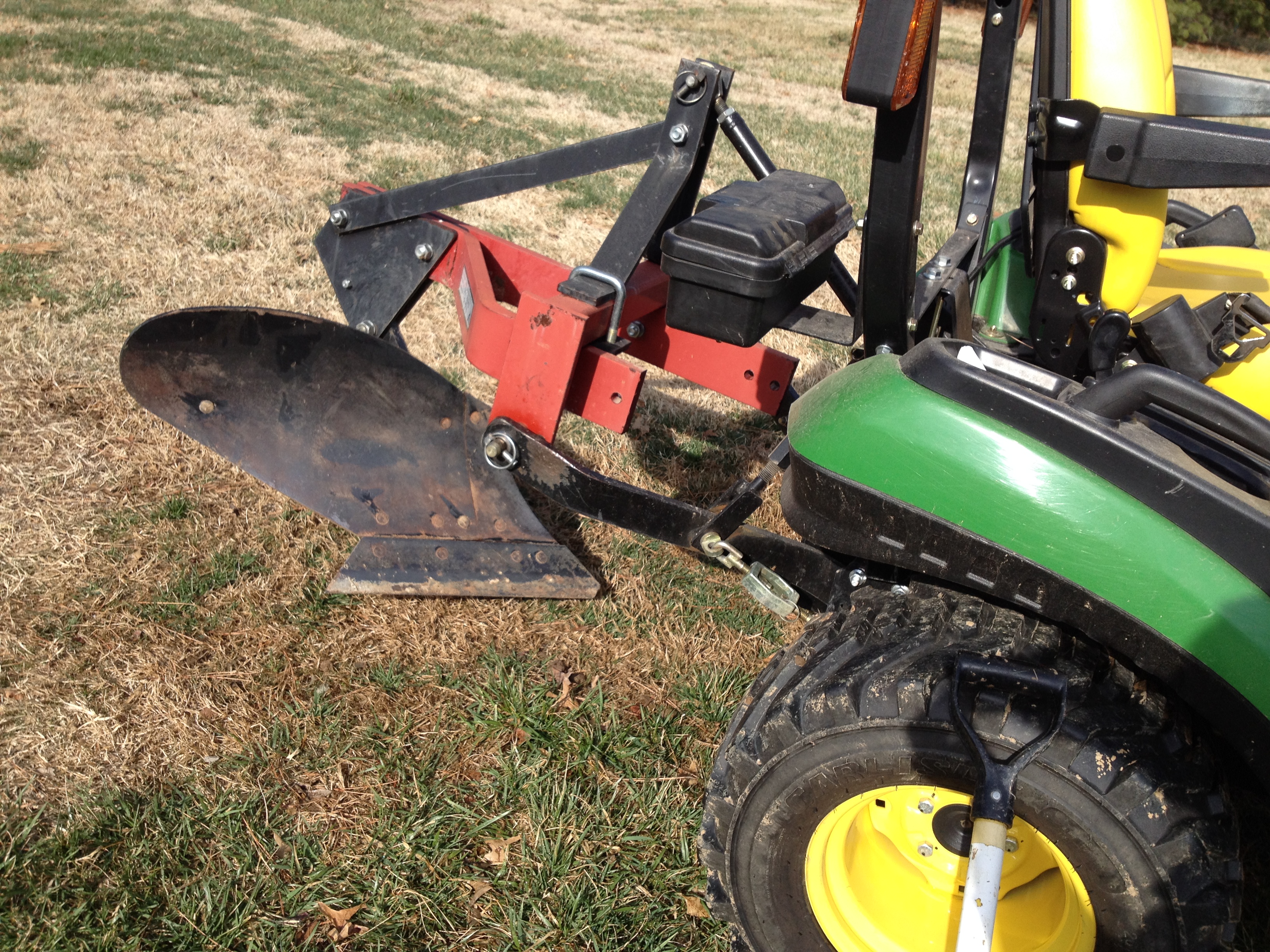 We use a large tube of black grease as well to use as lubricant but some days it seems we get as much on us as on the machinery. Let me tell you, it is very difficult to get it out from under your fingernails! So after a quick change of implements this morning, the plow was in place and ready for action.