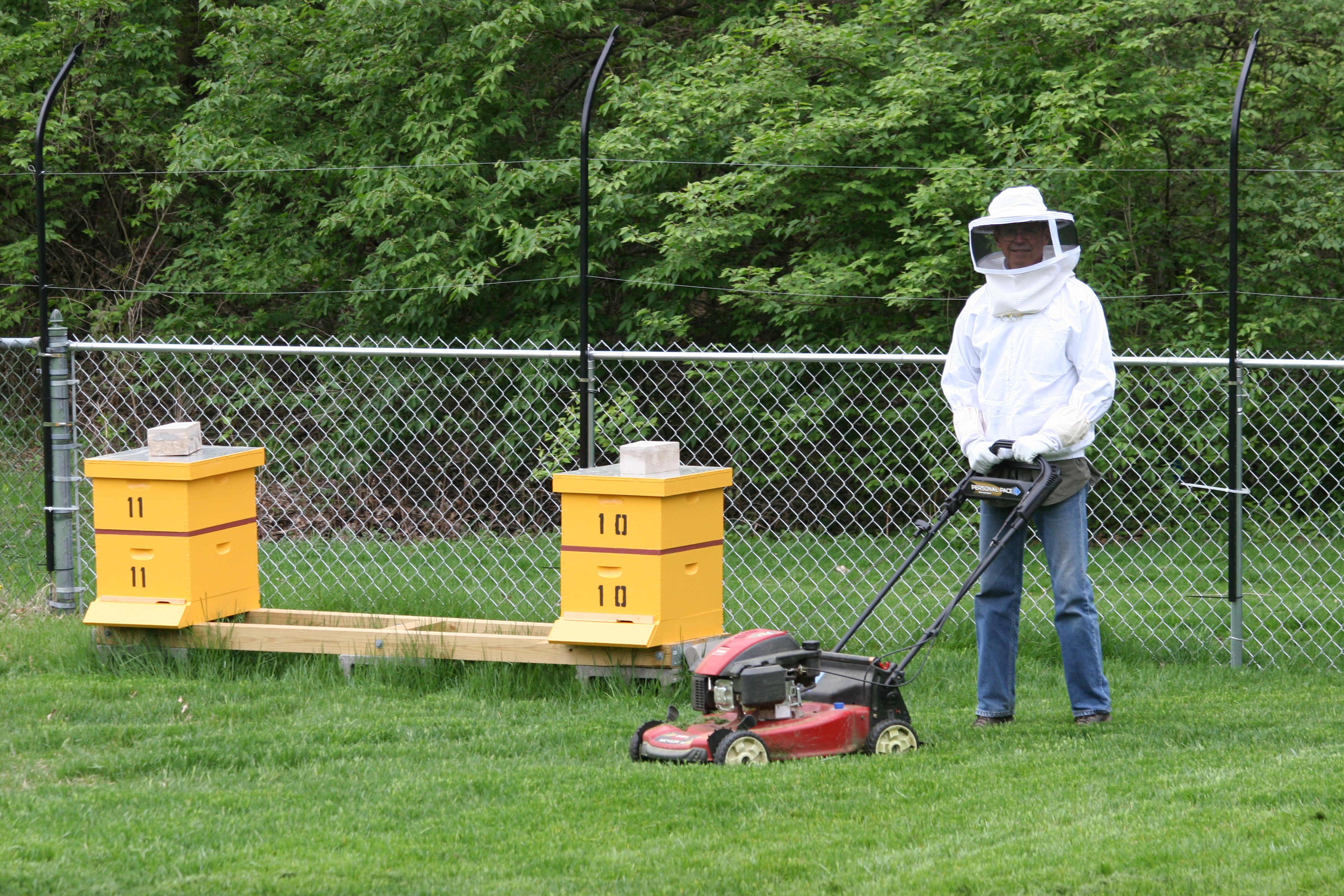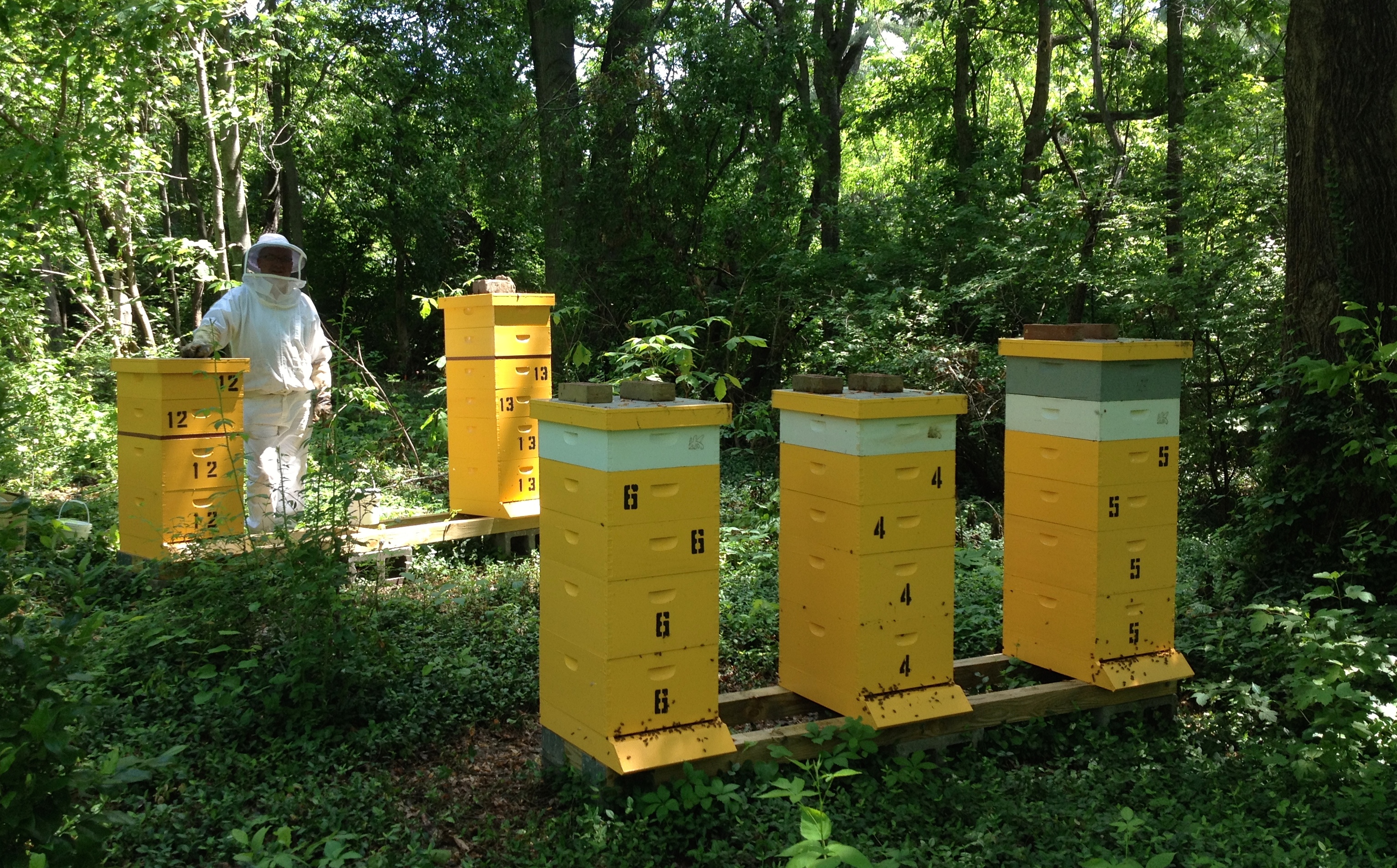 Here he is at one of his favorite bee yards. He has five of his hives here in various stages of development. The bees are easy to work and are being very, very productive. He will most likely get his first honey of the year from these hives in the next week or two.