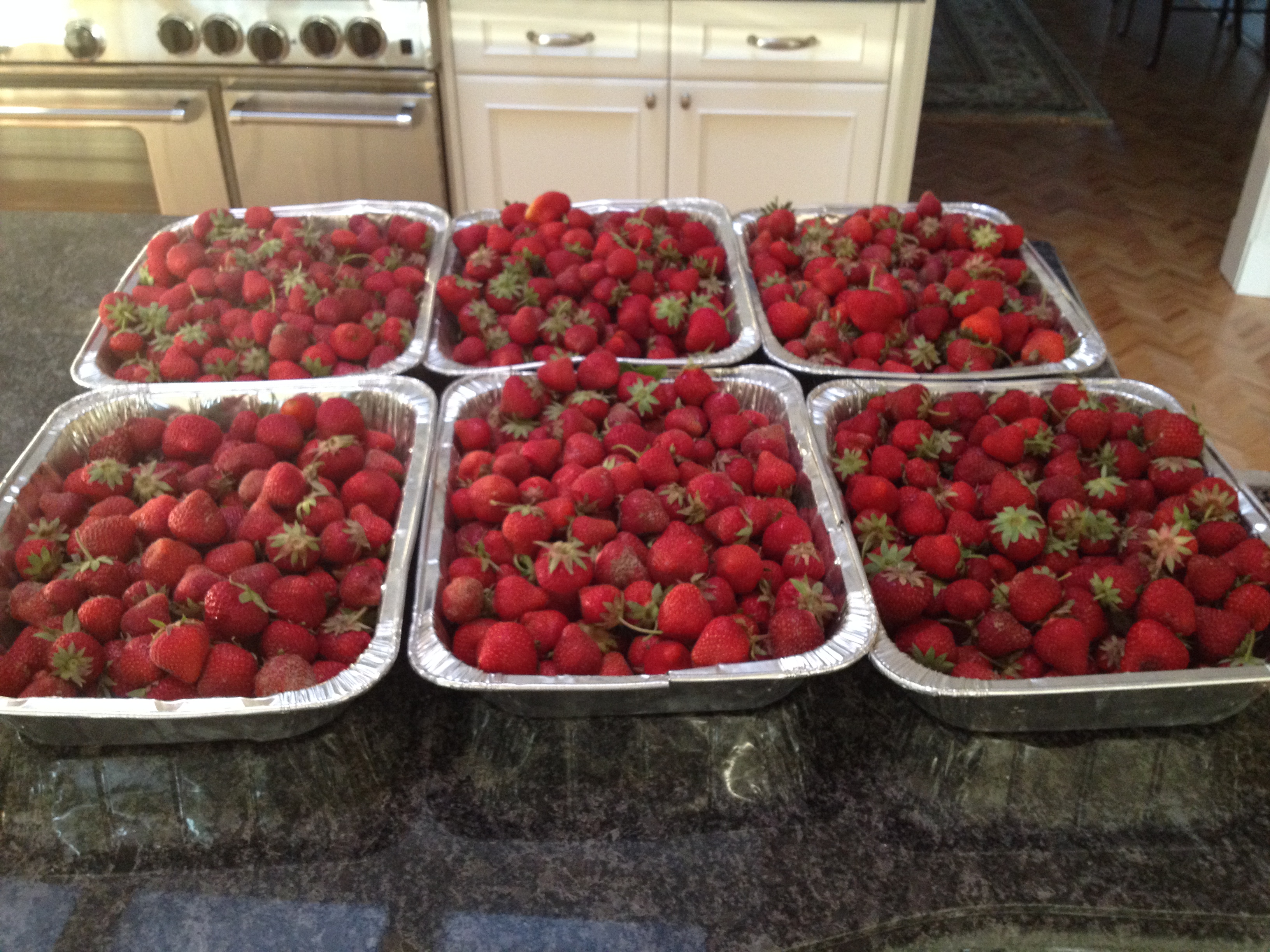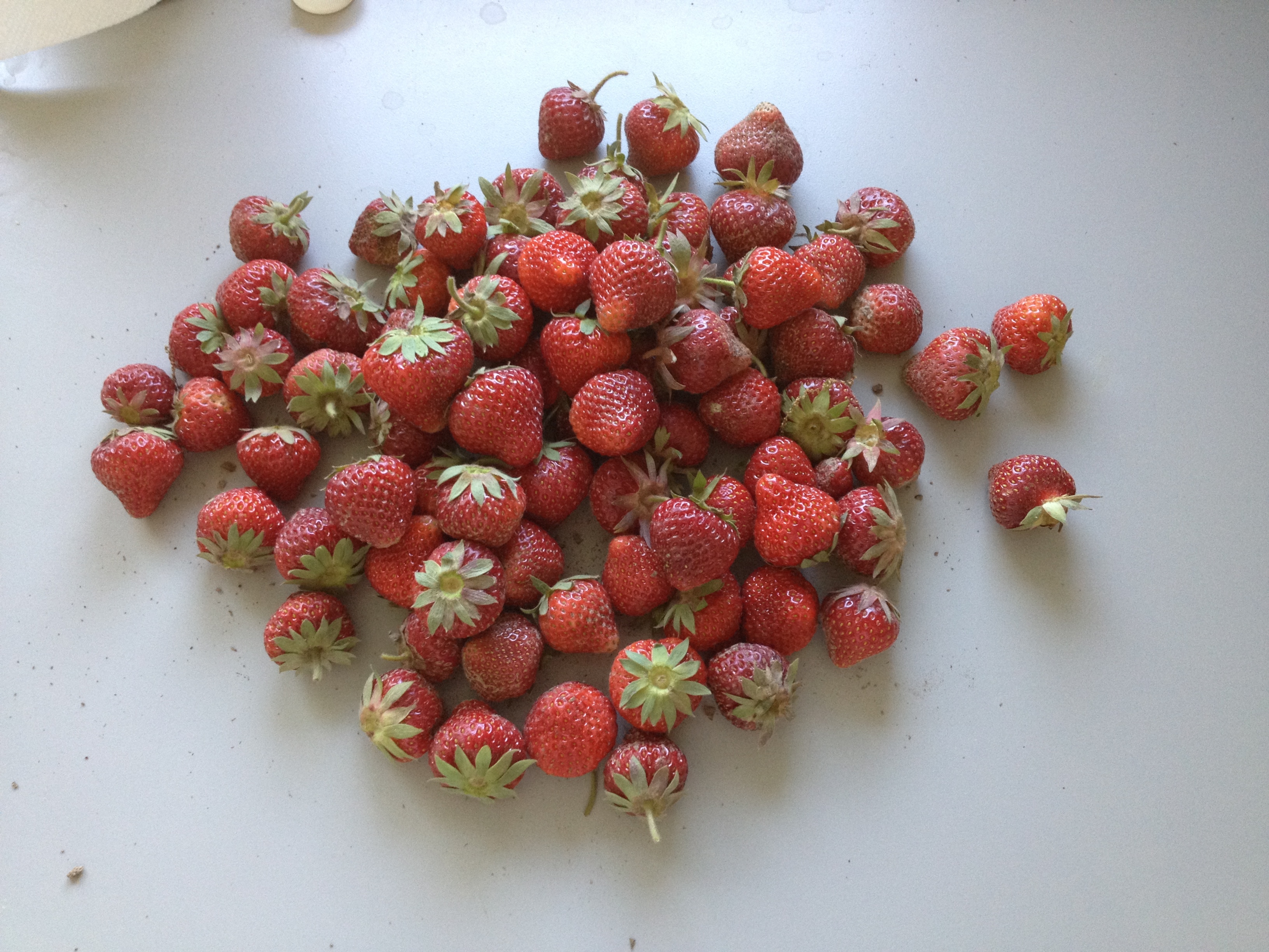 Last Wednesday’s strawberry harvest was a single day record so far from this patch, weighing in at 25lbs 6oz! I picked again on Friday and the haul was smaller but still significant at 15lbs 10 oz, bringing the total YTD at over 95lbs. I find all sorts of creatures while picking in the patch…can you see how nicely this toad is camouflaged? He sure took me by surprised when he suddenly moved right under my nose!