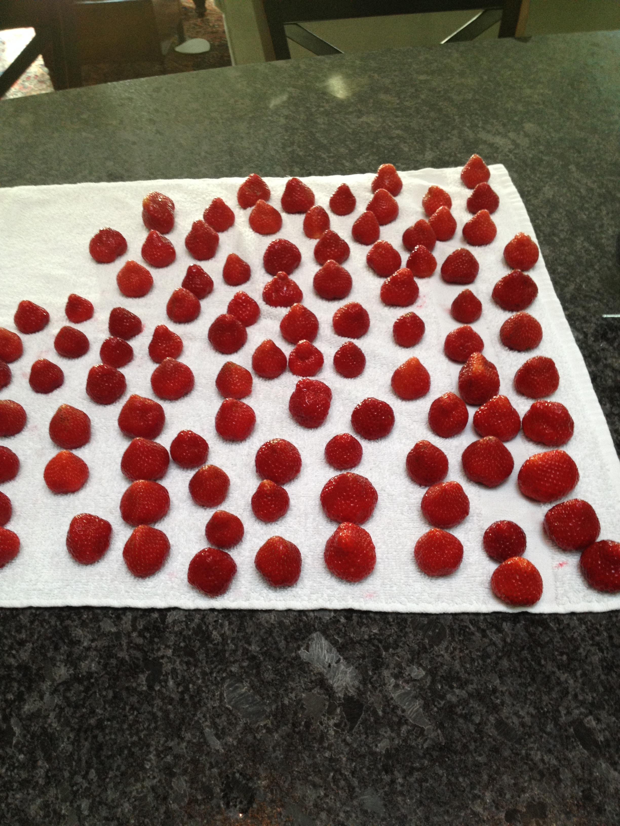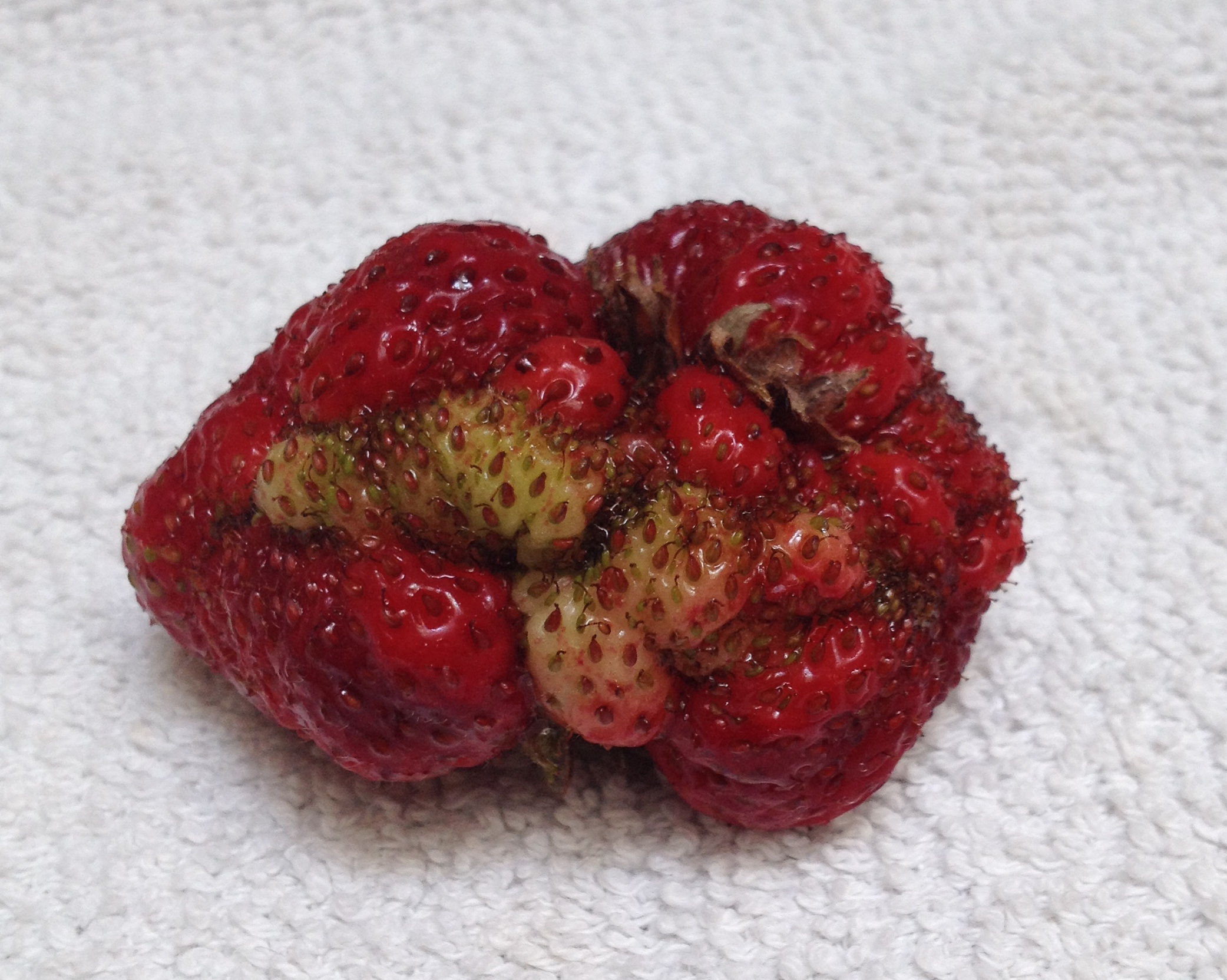 I know I sound like a broken record since I am constantly telling people that I either have to go out and pick and/or work up that which I just harvested. In fact, I should be washing and hulling more right now but I had to take a break. Here is my favorite strawberry of the year so far….I call it Quasimodo’s Lips…I think it looks like ruby colored lips that are puckering for a sloppy, gross, kiss from himself!