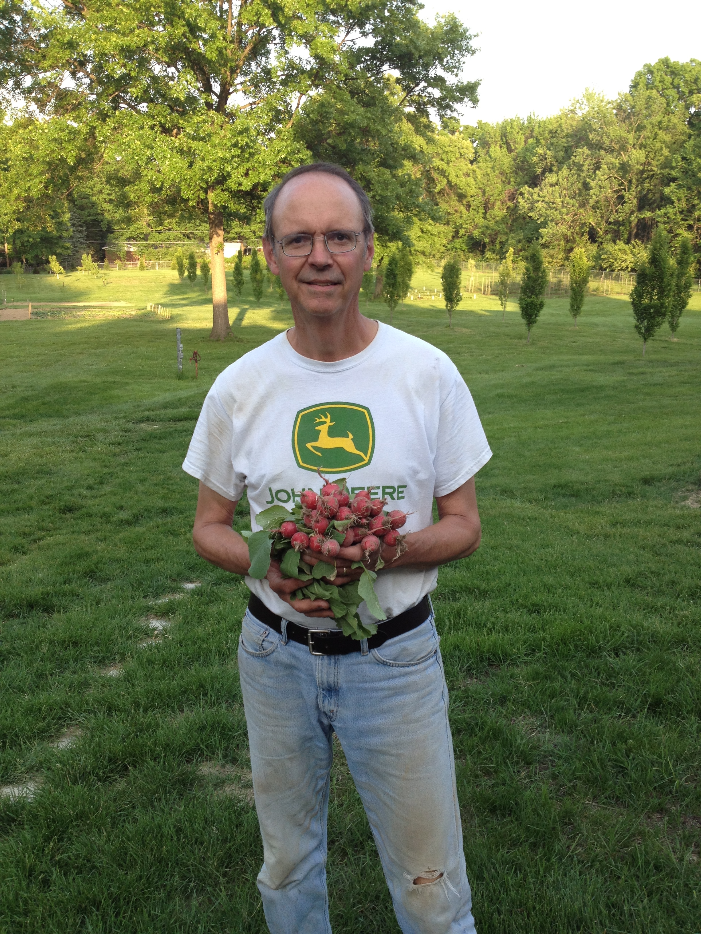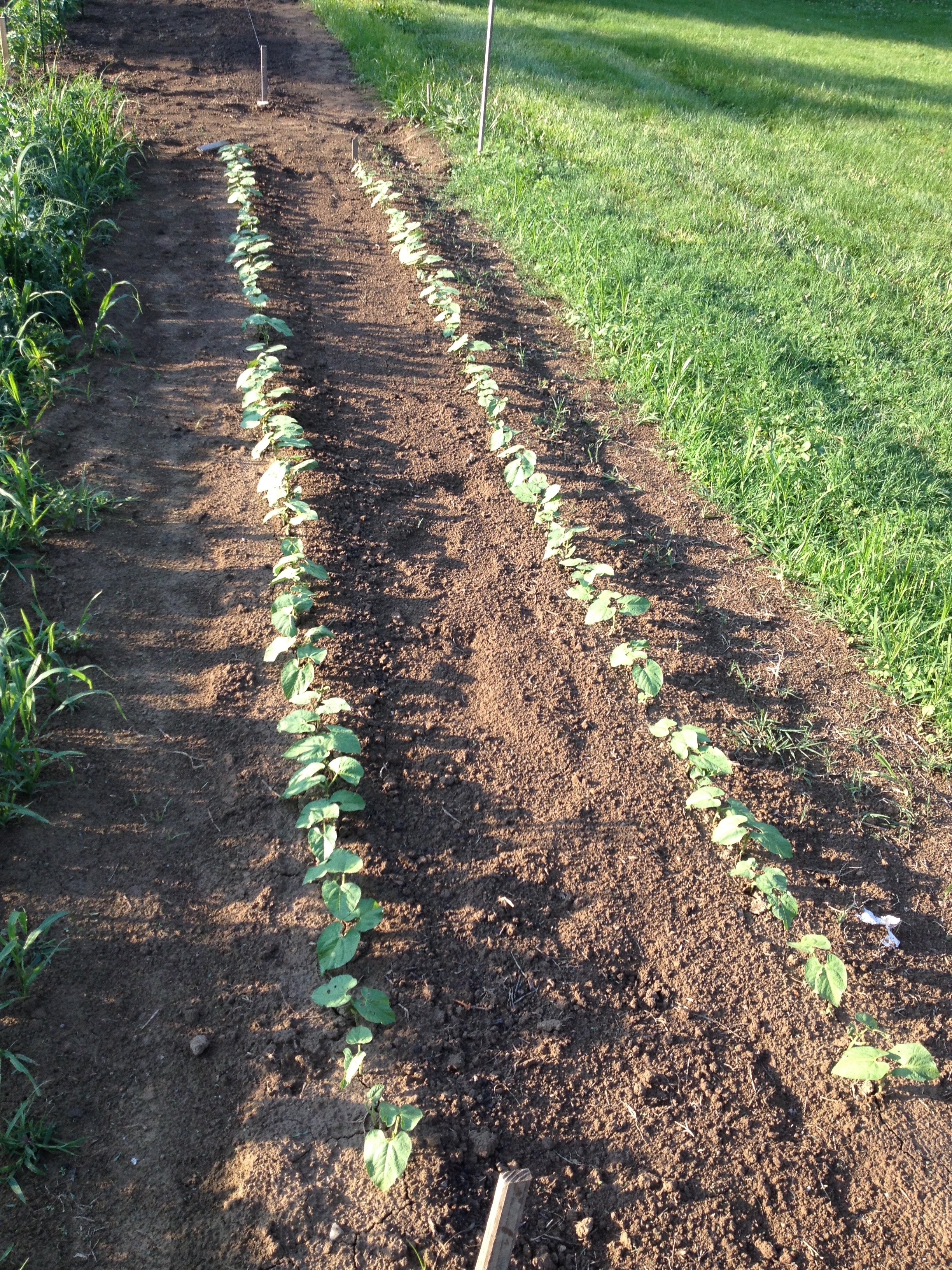 The green beans are finally perking up and showing off in perfect rows….they really want to see the heat of the summer so it will be several more weeks before we have beans to eat.