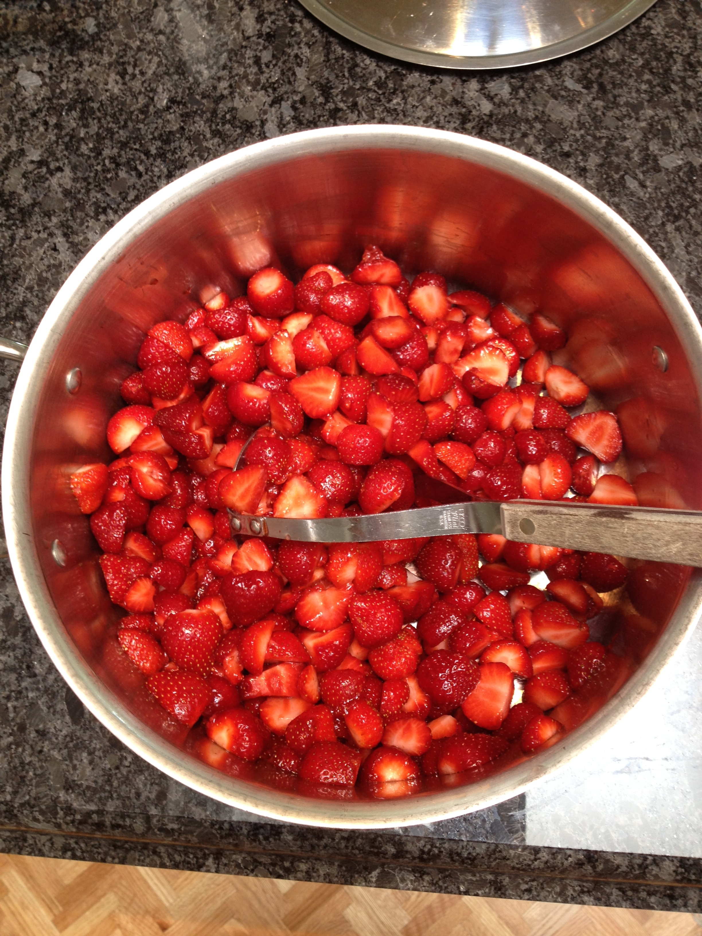 We ate as many of them as we could and froze the rest! Yummy! Today I’m off with Helen to work the bees while Jurgen is in Germany on business. We should find that the bees are working hard to replace all the honey that was extracted several weeks ago…455 pounds in total! I’ll hope to have a bee report soon! Happy one week anniversary, Kate and Jason!