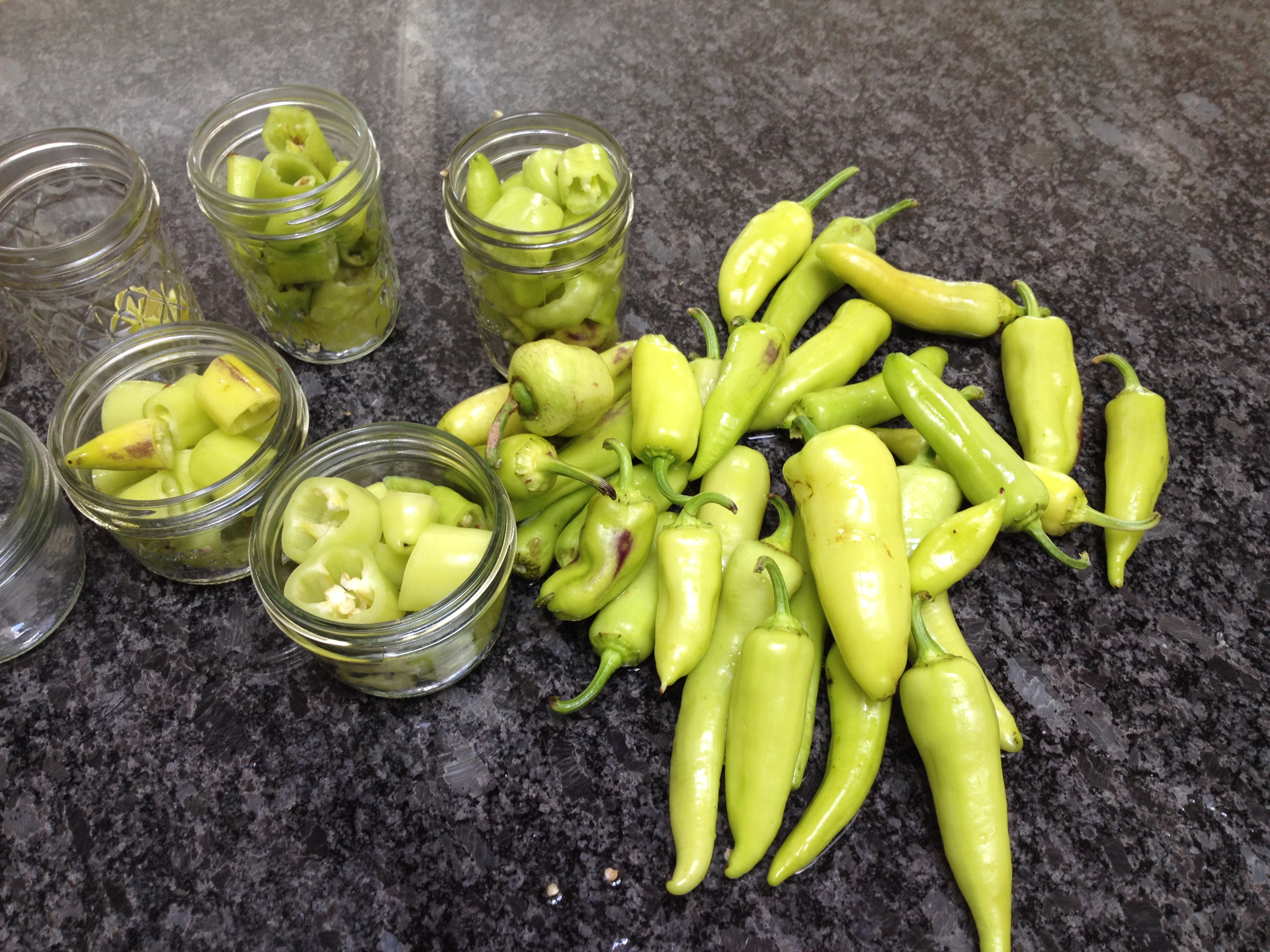 Much to Dave’s delight, I also processed the banana peppers into a pickled version that he loves to put on sandwiches. Although the Farm Report says that we only harvested 12 or so pounds of these, that was quite enough for me! I made about 20 jars and Dave is plowing through them quickly!
