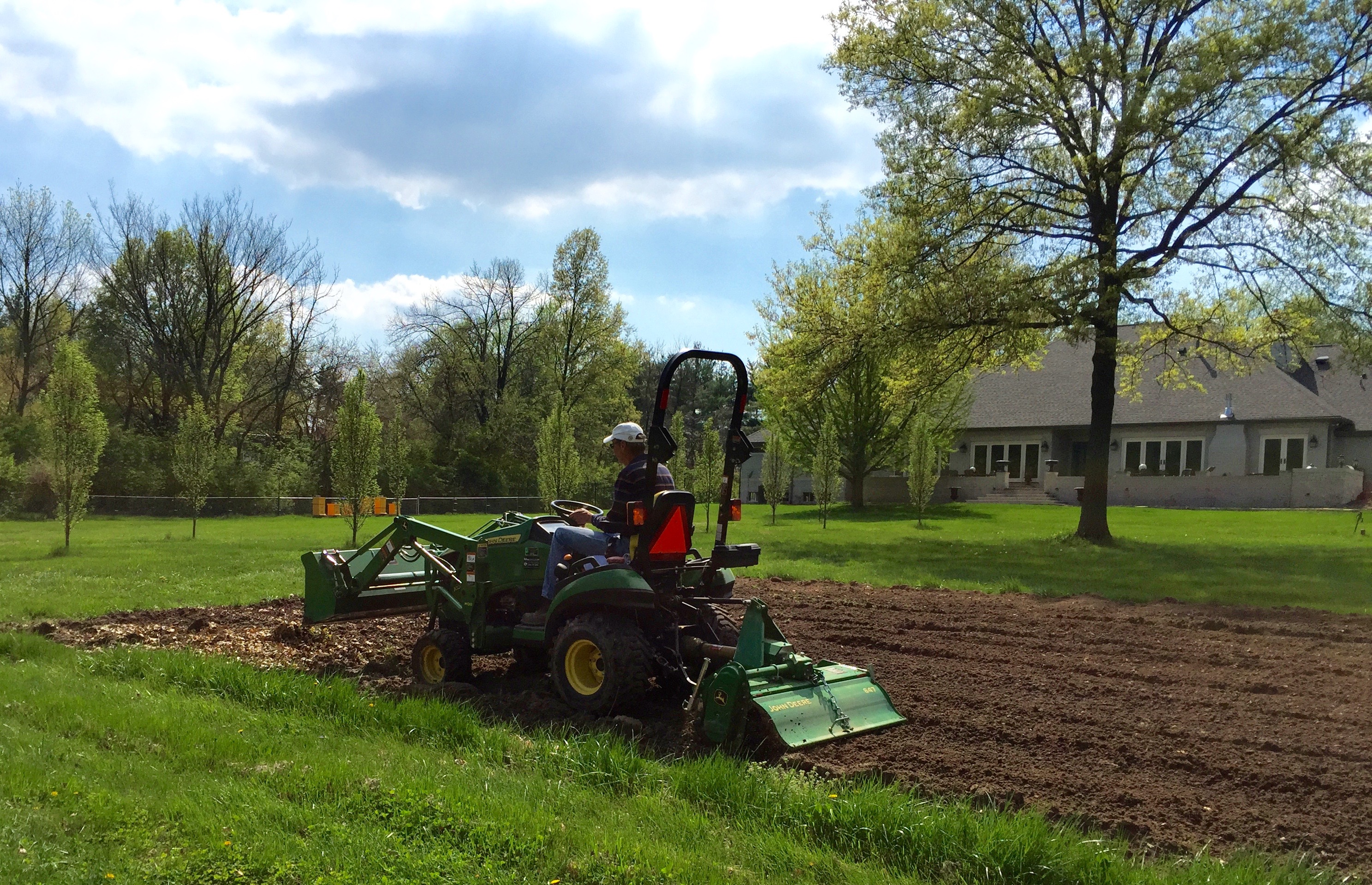We were finally able to get the fields tilled this week…again under the pressure of more rain on the way this weekend. Here is Dave doing a nice job of tilling things up, incorporating all the lovely composted leaf matter that we added over the fall and winter to each field.
