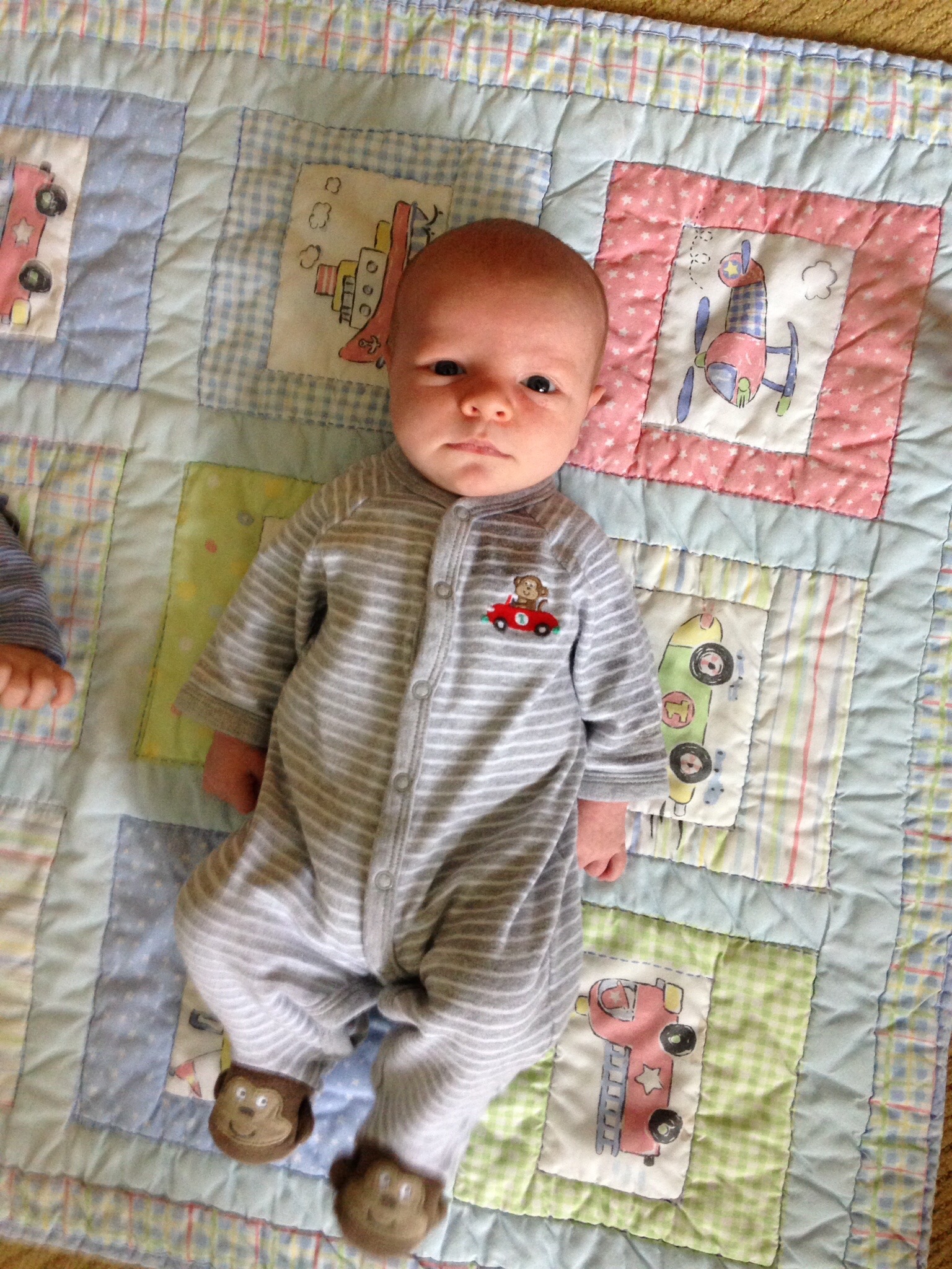 He is such a mellow fellow. Here he is enjoying a recent moment in his monkey-toed onesie! Those eyes are just so transfixed! We can’t wait to welcome the Ward family here soon! Happy Mother’s Day to all, but especially to new mother, daughter, Kate!