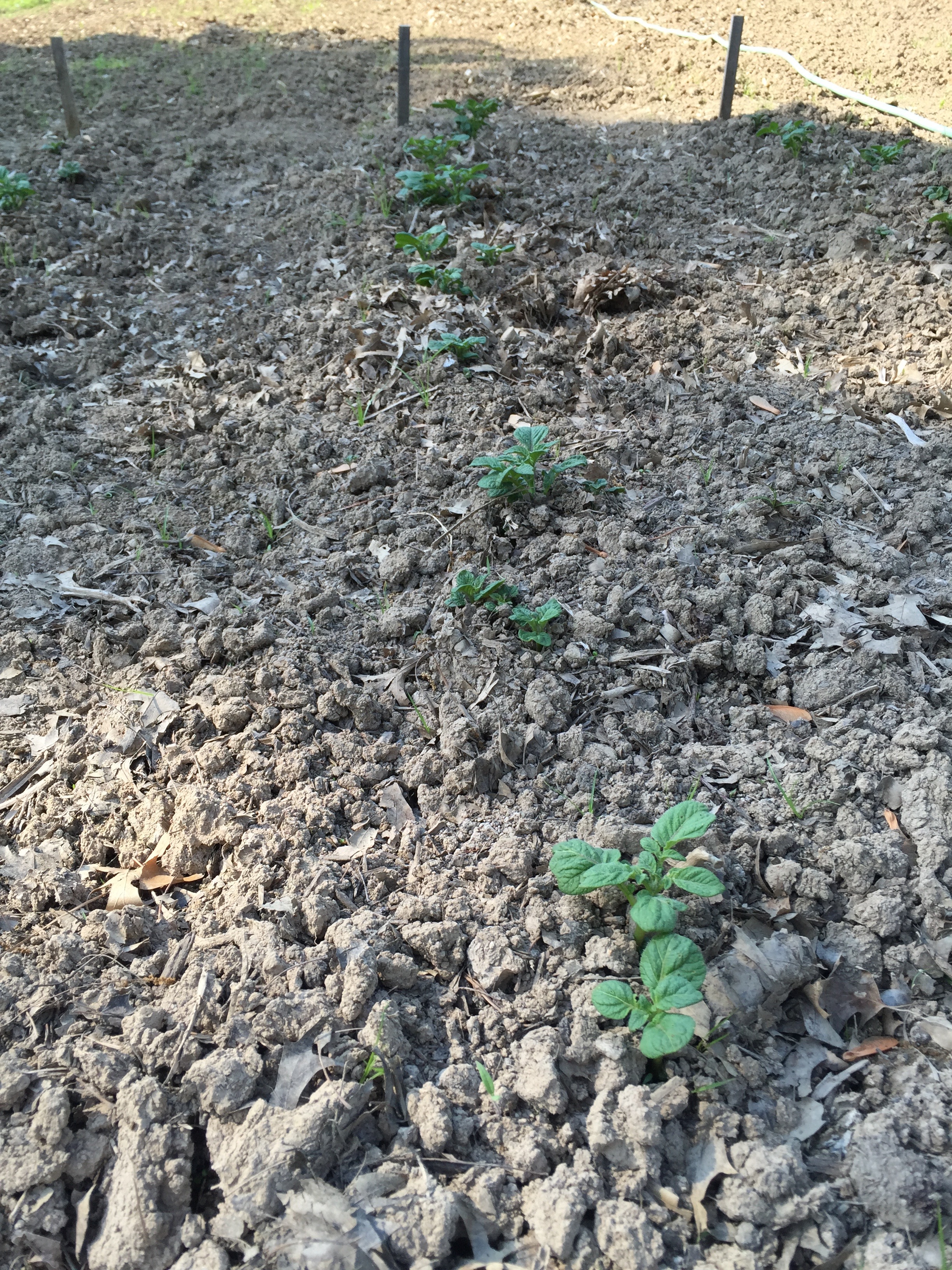 The peas and potatoes look like they are off to a great start as well and are enjoying the Rain. Here are some of the potatoes.