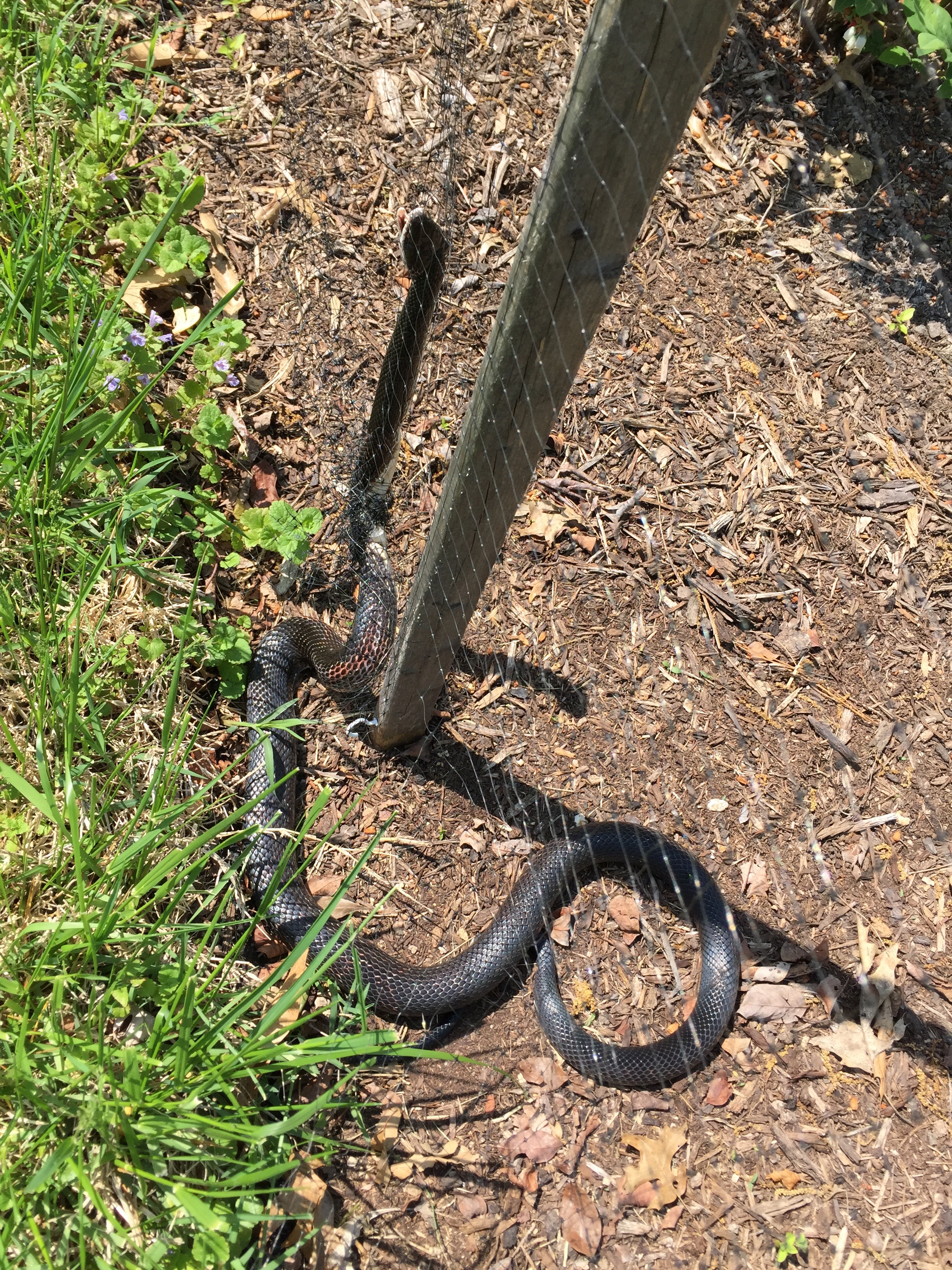 Unfortunately, as in years past, we had a dear black snake get caught up in the blueberry netting and we had to cut his lifeless remains out of the mess.
