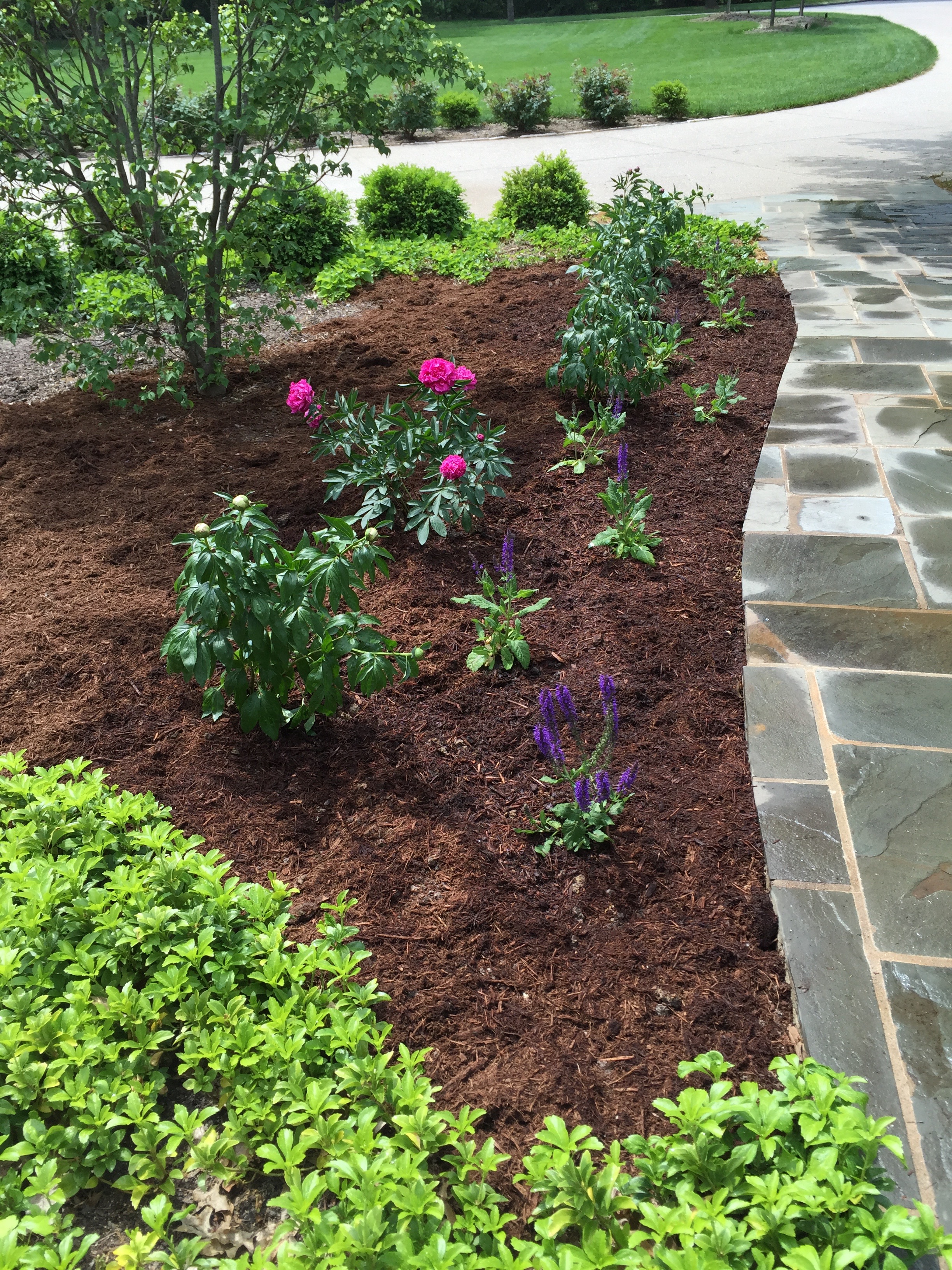 In addition to fruits and veggies, I worked on the front flower beds to weed and feed them this week as well as plant a few perennials at the side entrance. I realized I had “peony envy” and added these plants….