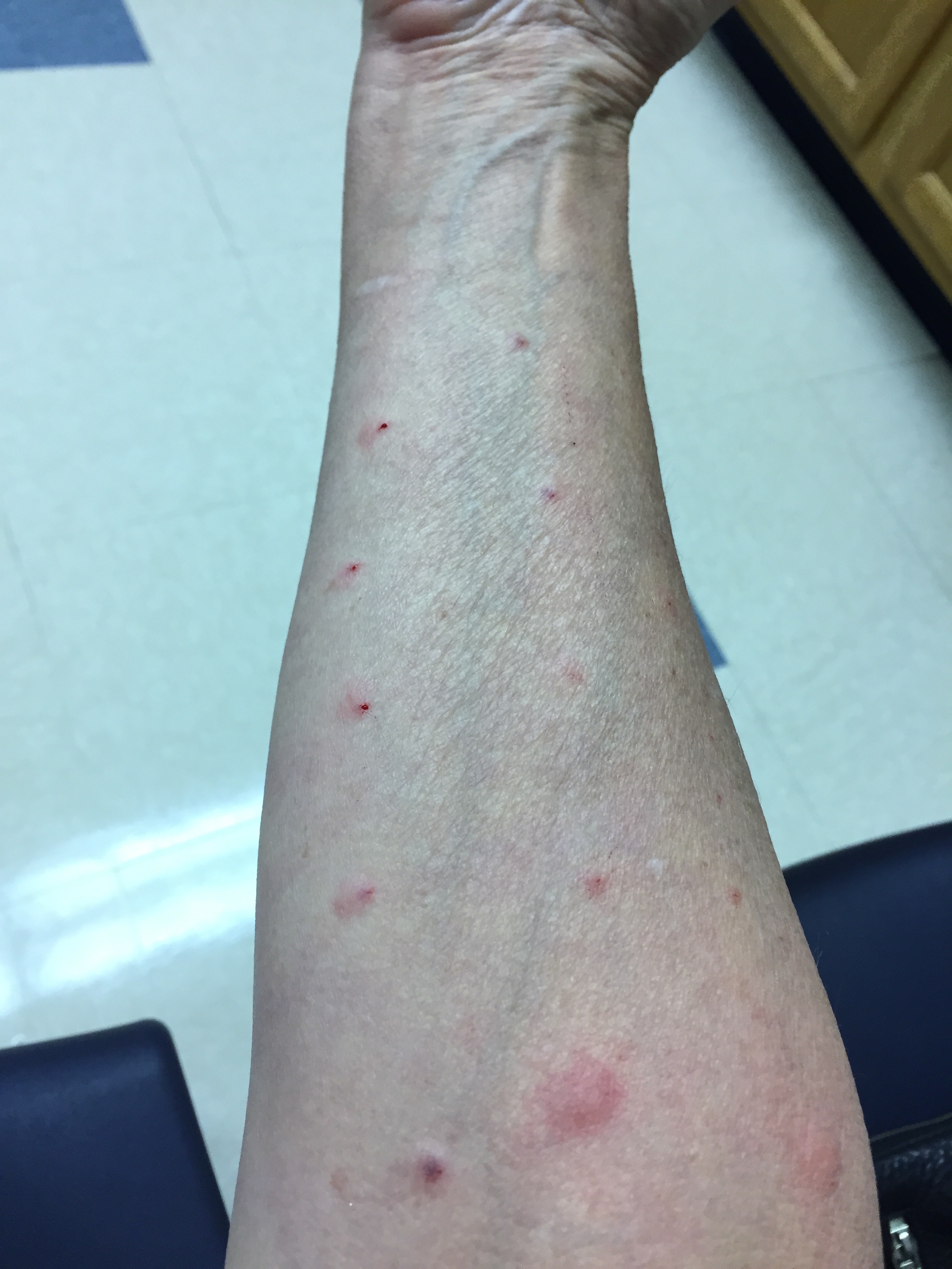 I spent the morning with my allergist. Although I have not reported any of my problems with bee stings here, over the last year I’ve had an increased reaction anytime that I was stung. (Beekeepers just have to be cool with stings now and then.) I truly don’t mind these stings, but apparently, my body does! As my skin says ‘no more’, I consulted my dermatologist after my last episodes who sent me directly to my allergist. Although my reactions were to some degree “manageable” I was told that they would only get worse over time. So, today I had venom testing done at my allergist’s office and to no surprise, with the slightest prick of the lowest concentration of honeybee venom, I had quite the localized reaction. (This is not to be confused with a systemic reactions that would require an EpiPen. (Of course we have EpiPens on site at the farm as well as carry them with us in the field as a precaution when working in the beeyards.) So, I kind of looked like a drug addict today but I could not resist a pic of one of my arms (both arms were involved!) while they tested me for various stinging insect venoms besides honey bees which included wasps, hornets, yellow jackets and one other that I just can’t remember!!! IMG_7844