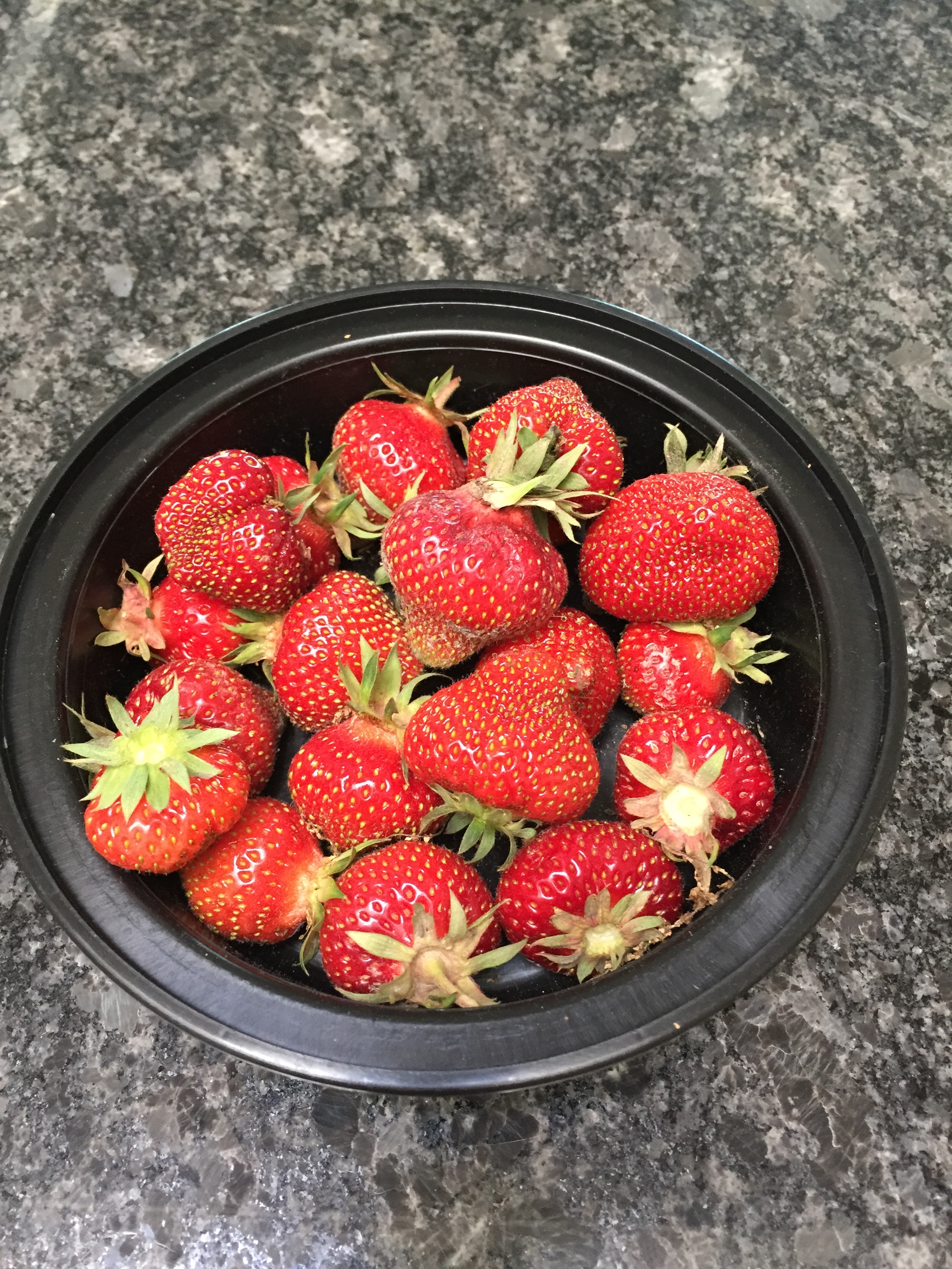 Despite being on the receiving end of more than 2.38 inches of rain over the last two and one half days, we have managed to squeeze in some important tasks. I harvested the first of the strawberries yesterday which was a nice addition to my Mother’s Day celebration. There were just a few to pick, (less than 1/2 a pound) but they were sure tasty for our breakfast this morning. Boy, fresh from the field tastes amazing!
