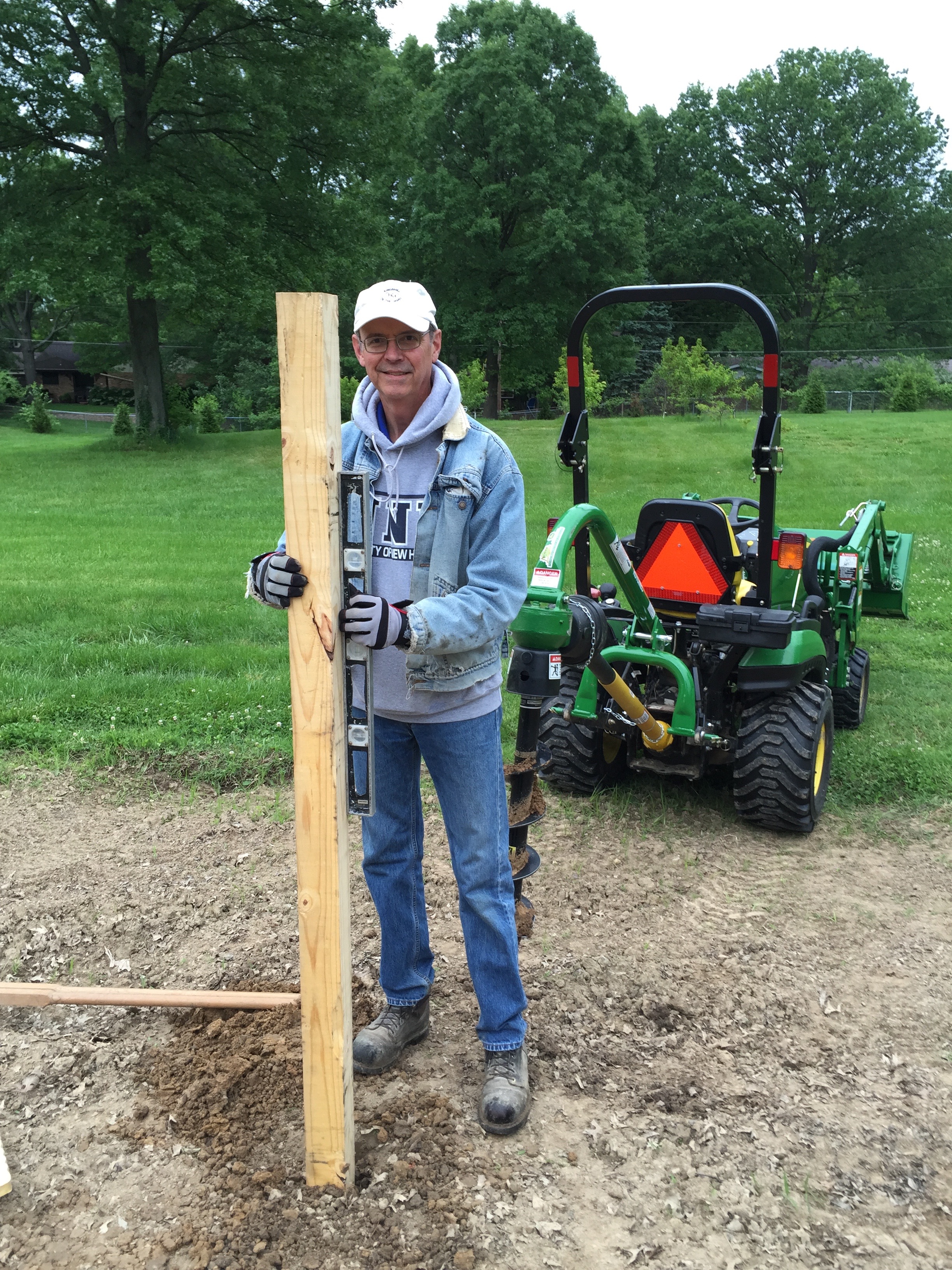 So he staked out the field and measured where each stake would go before drilling for them. Anytime you can use the power of the tractor, you are steps ahead!