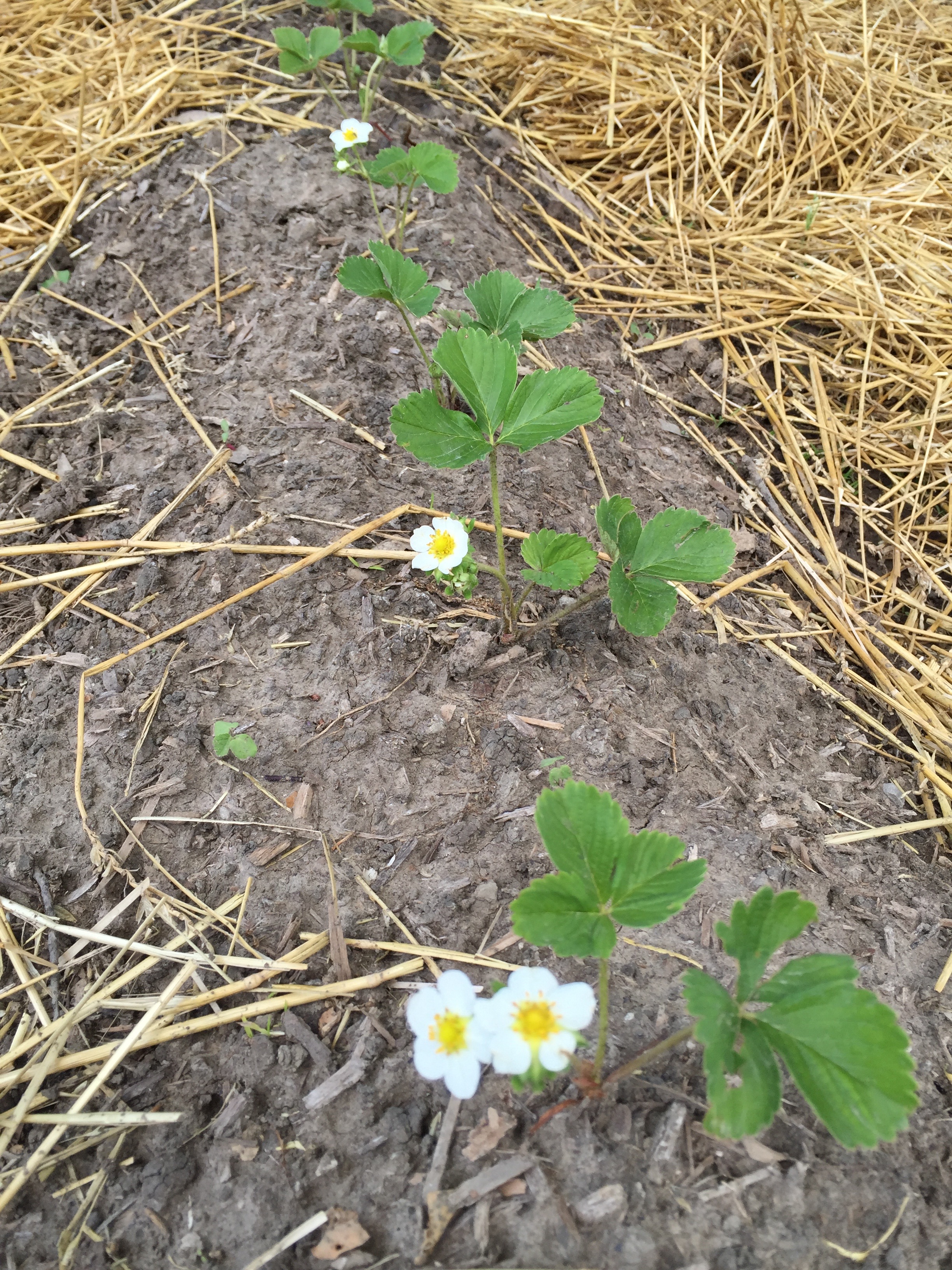 And wouldn’t you know it, the newest strawberry plants are already flowering! We might get a berry or two from these yet!