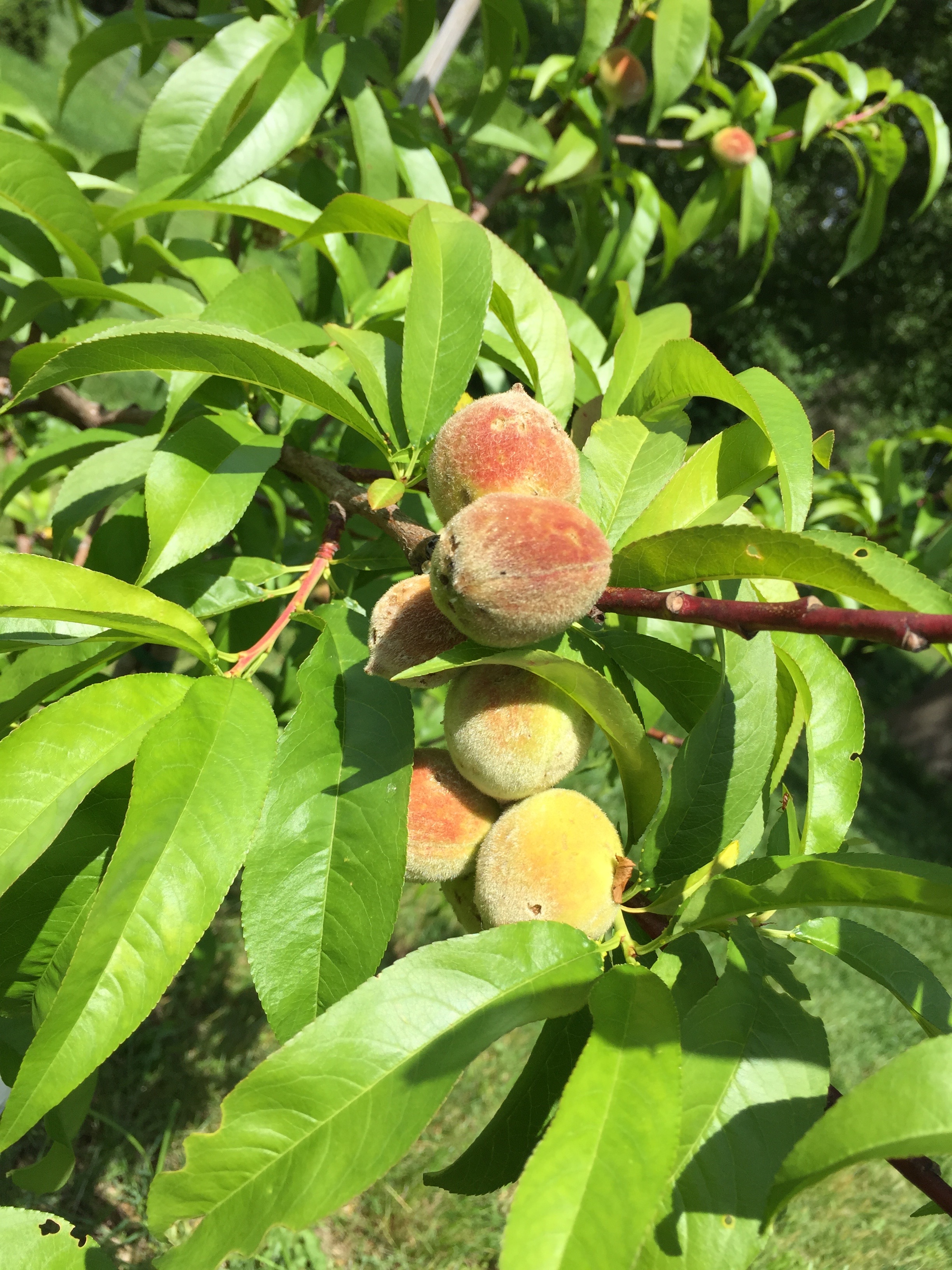The orchard trees are exhibiting more and more fruit for the summer and fall crops. Here are the peaches…