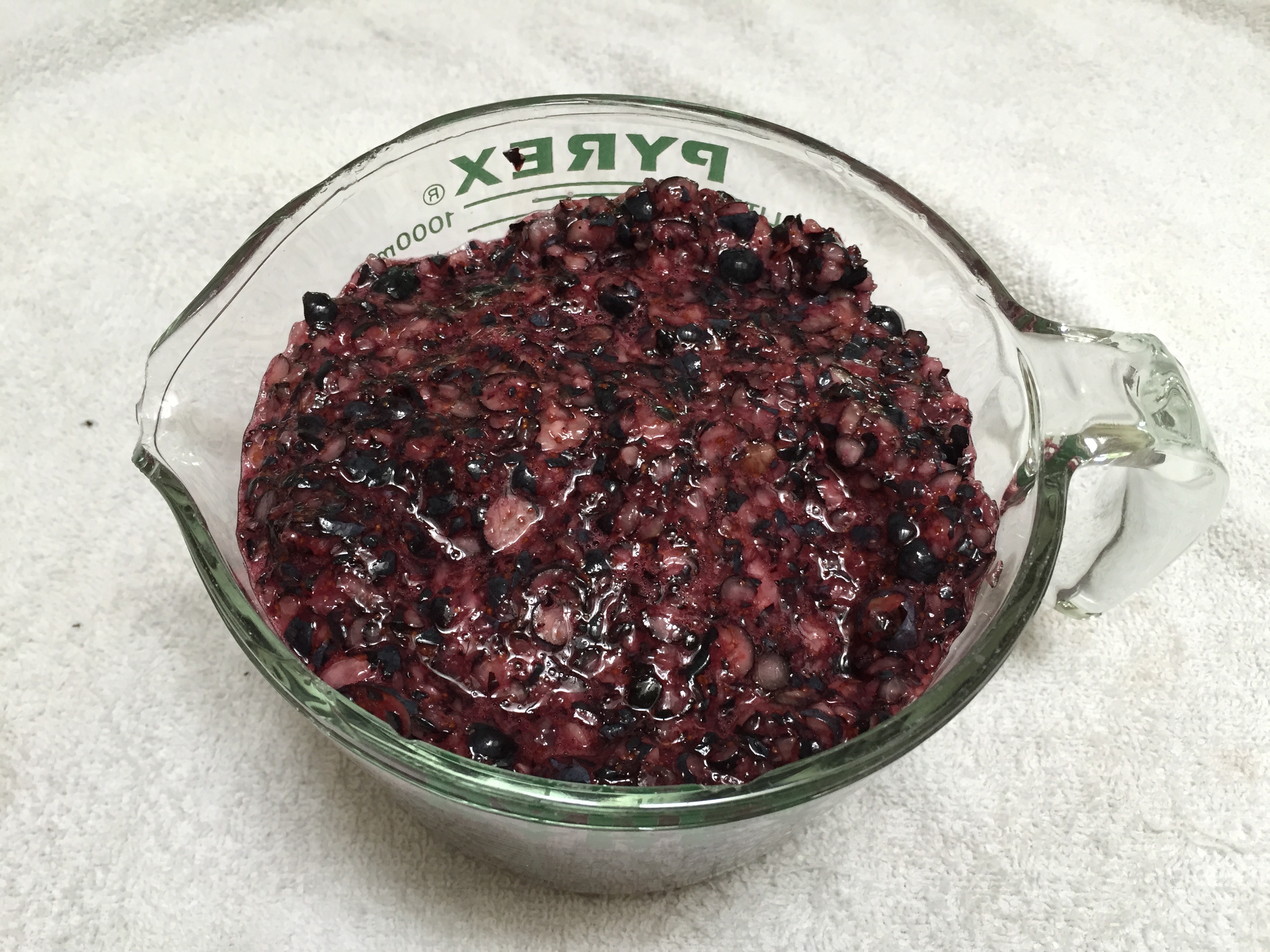 The general recipe I followed said to chop or mash the fruit first so into the Cuisinart (in batches) they went with a pulse action to barely chop them.