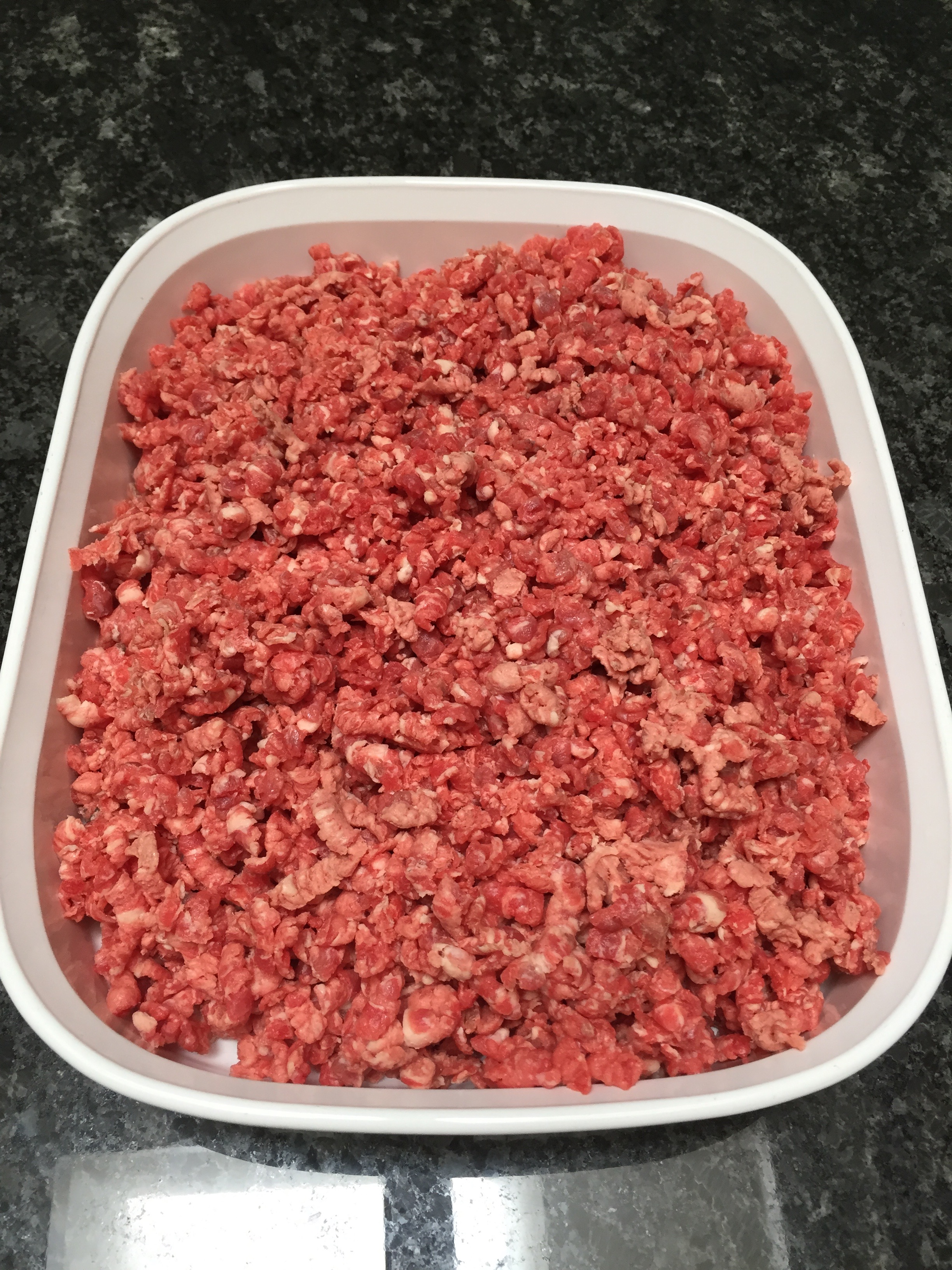 Viola, the motor did all the work this time instead of me and we have nearly 4.75lbs of lovely ground brisket, ready for hamburger patties!